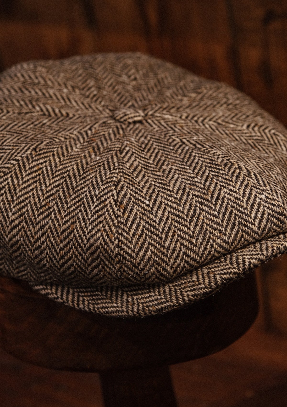 Ridgmount Baker Boy - (Narrow Width) Harris Tweed Light Brown Herringbone