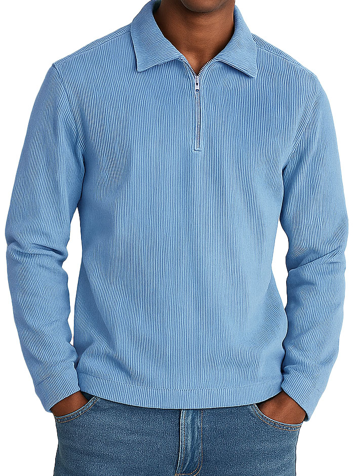 Men's Stylish Quarter-Zip Corduroy Ribbed Polo Sweatshirt