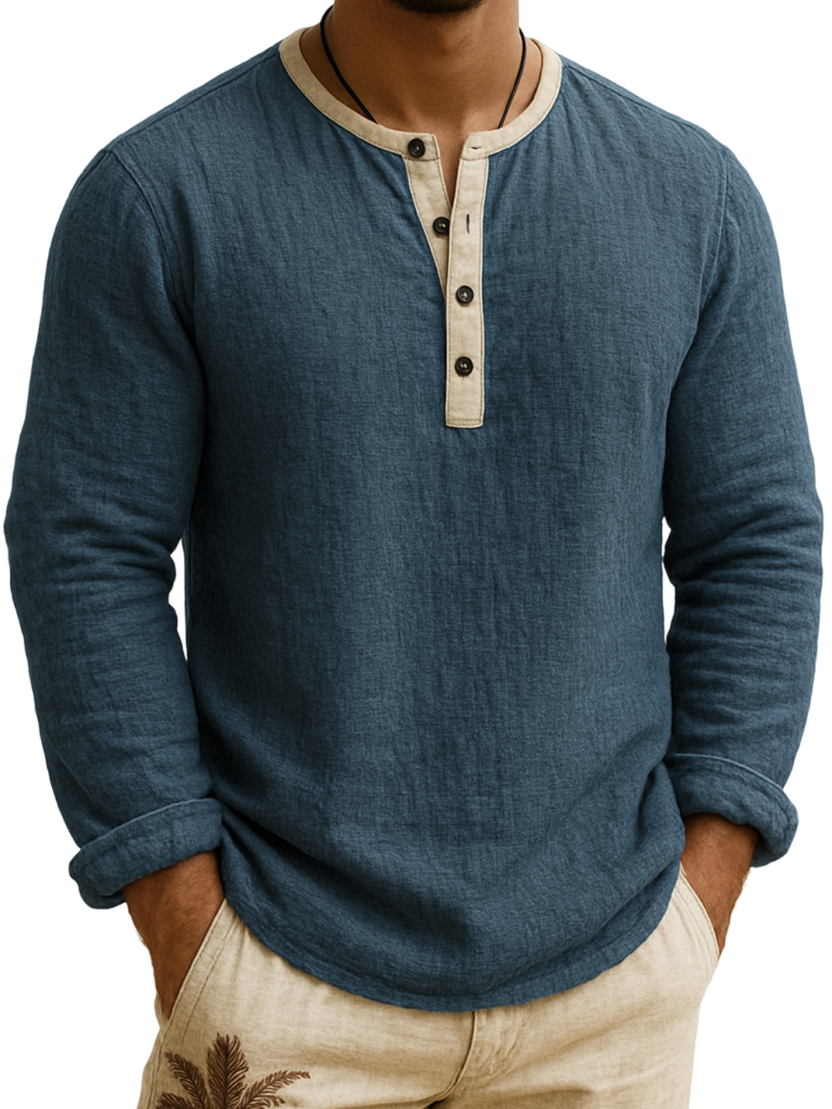Men's Breathable Linen Vintage Contrast Casual Henley Shirt
