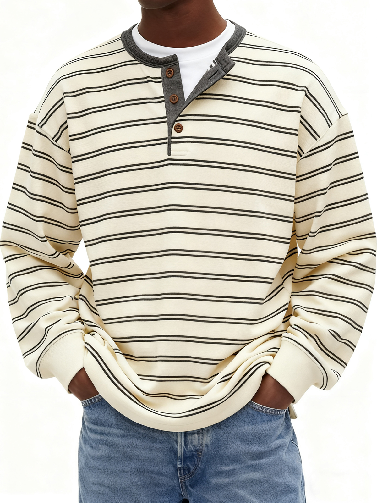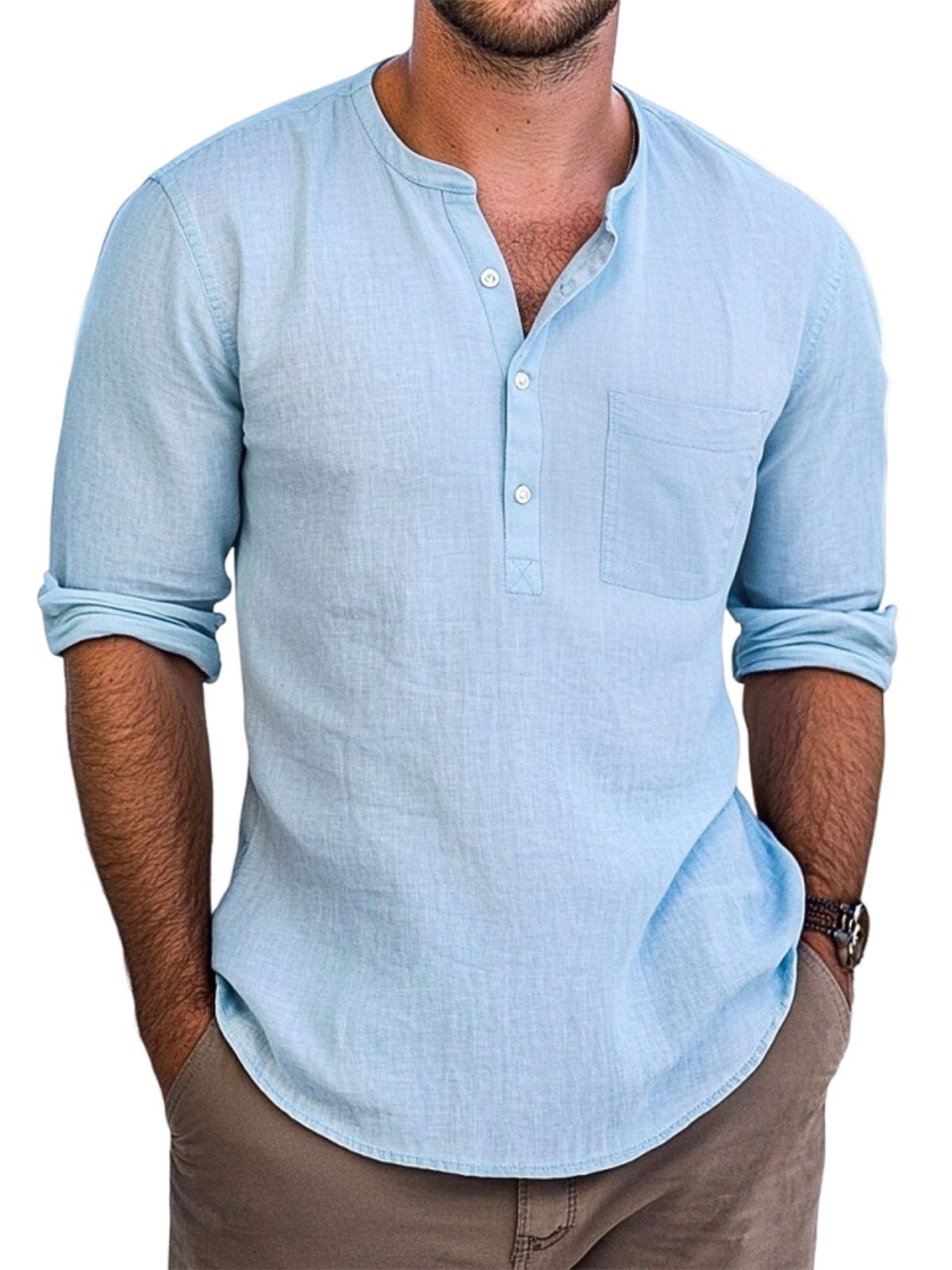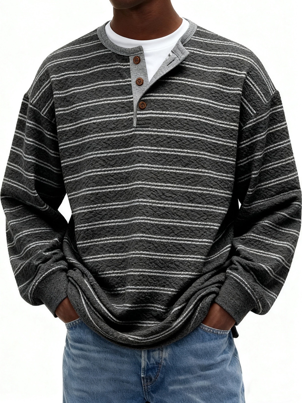 Men's Simple Texture Casual Button-down Long-sleeved Loose Henley Shirt