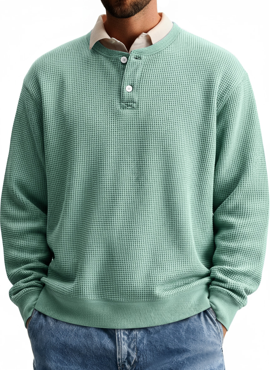 Men's Casual Solid Waffle Long-sleeved Henley Shirt