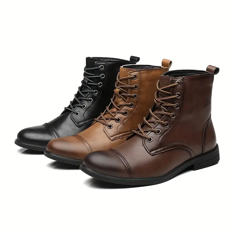Italian Men's High-top Leather Boots Cap Toe Waterproof Wear-resistant Dress Boots Work Boots