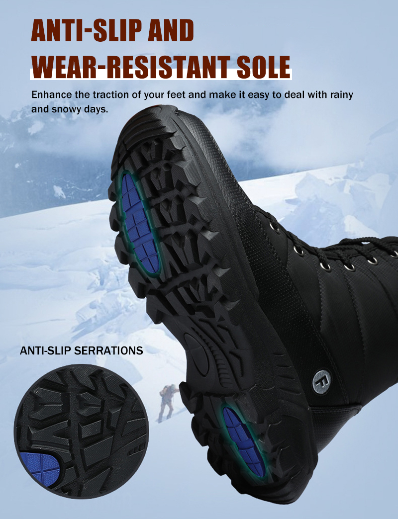 The upper is made of high-quality materials and is ASTM F1671 waterproof certified, ensuring your feet stay dry in wet conditions. The snowproof design protects your feet from the elements, allowing you to handle any winter challenge.