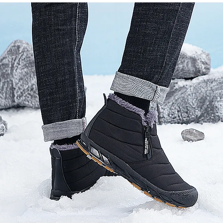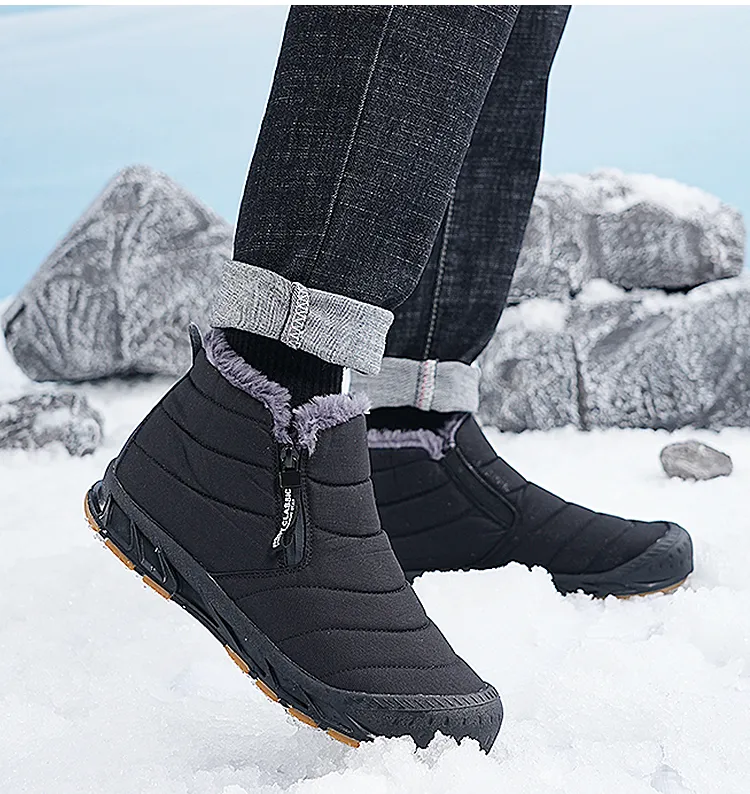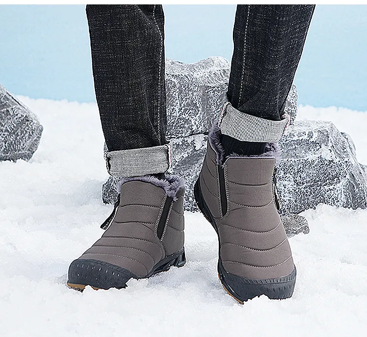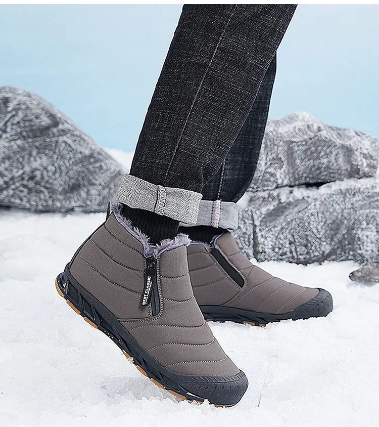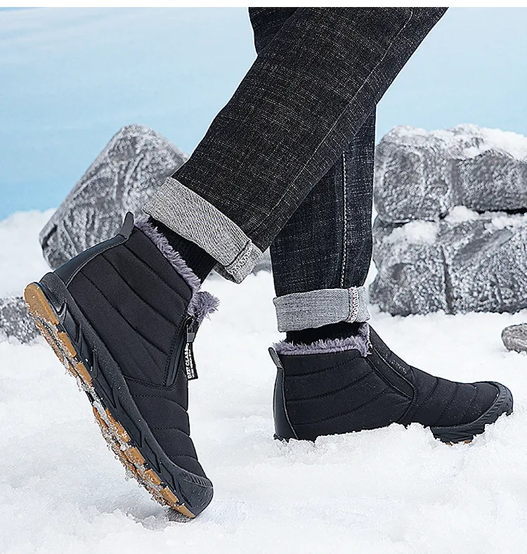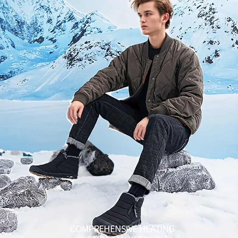 (⏰Limited Time Discount 49% off)Men's Thick Warm Snow Boots Water Resistant Non-slip Fur Lined Cotton Boots Zipper Slip-on Ankle Boots(2025Warmth upgrade)