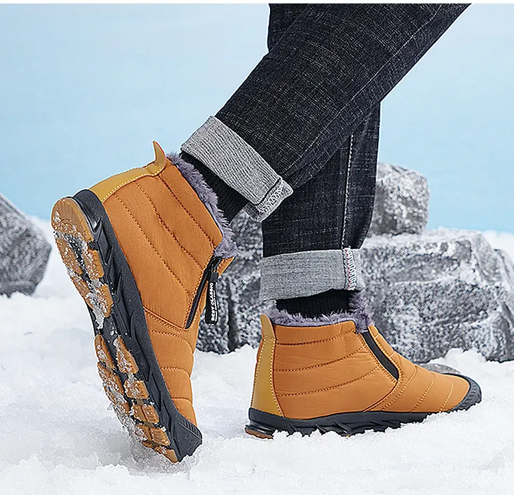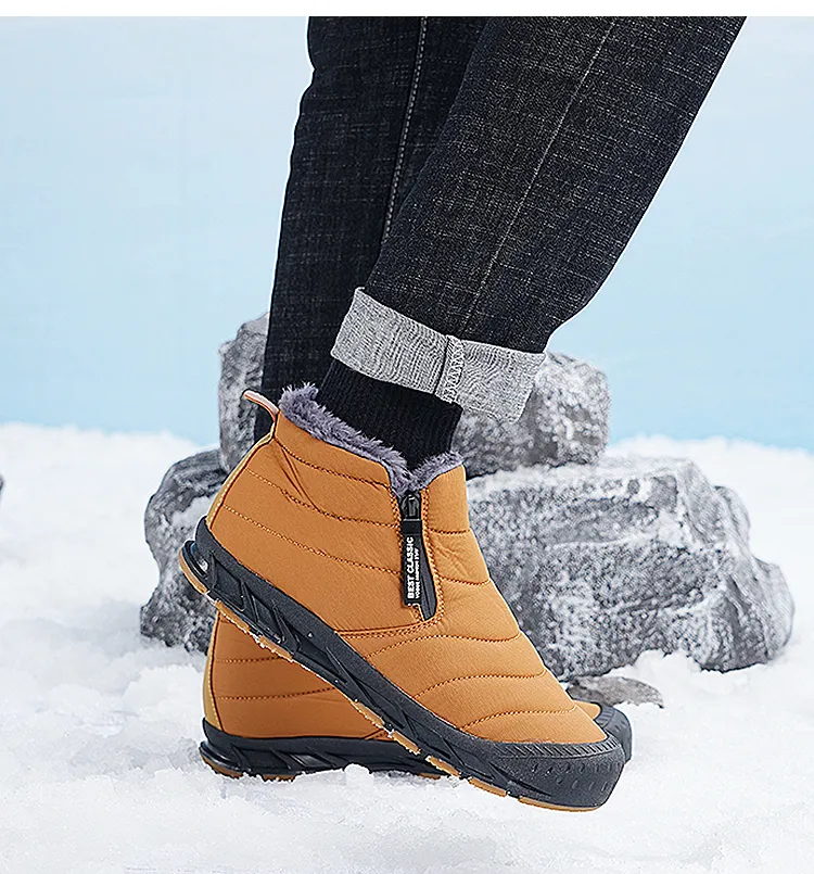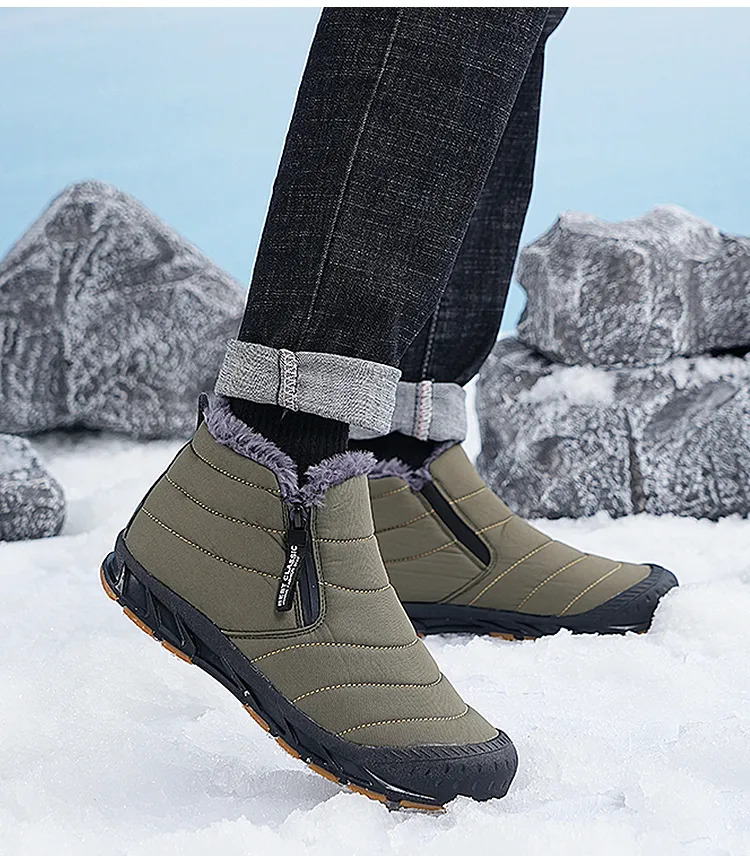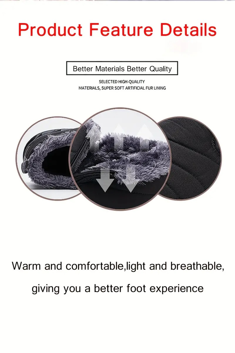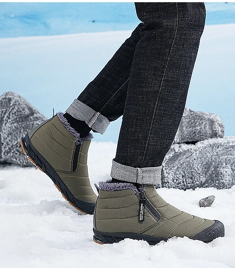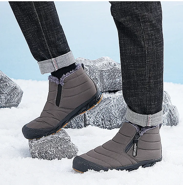 (⏰Limited Time Discount 49% off)Men's Thick Warm Snow Boots Water Resistant Non-slip Fur Lined Cotton Boots Zipper Slip-on Ankle Boots(2025Warmth upgrade)