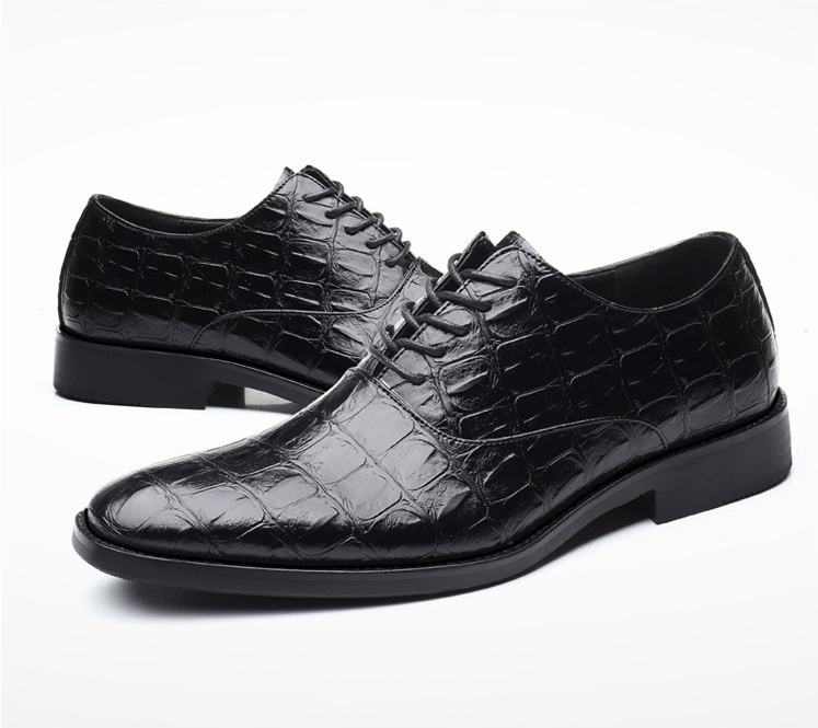 Classic Dress Shoes for Men/ Lace Up Round Burnished Toe Derby Shoes Leather Rubber Sole Non Slip Anti-Slip Block Heel
