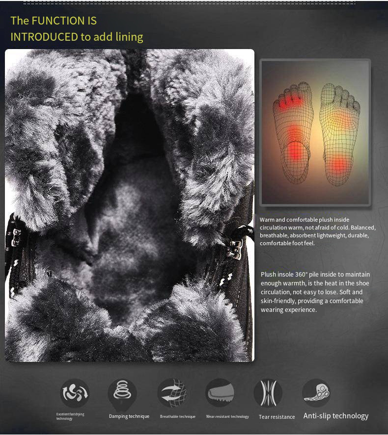 Our men's snow combat boots are designed to ensure every step they take is safe and comfortable. These boots feature high-quality genuine leather material that provides excellent waterproofing. The spacious toe design allows ample space for your feet, providing extra comfort.