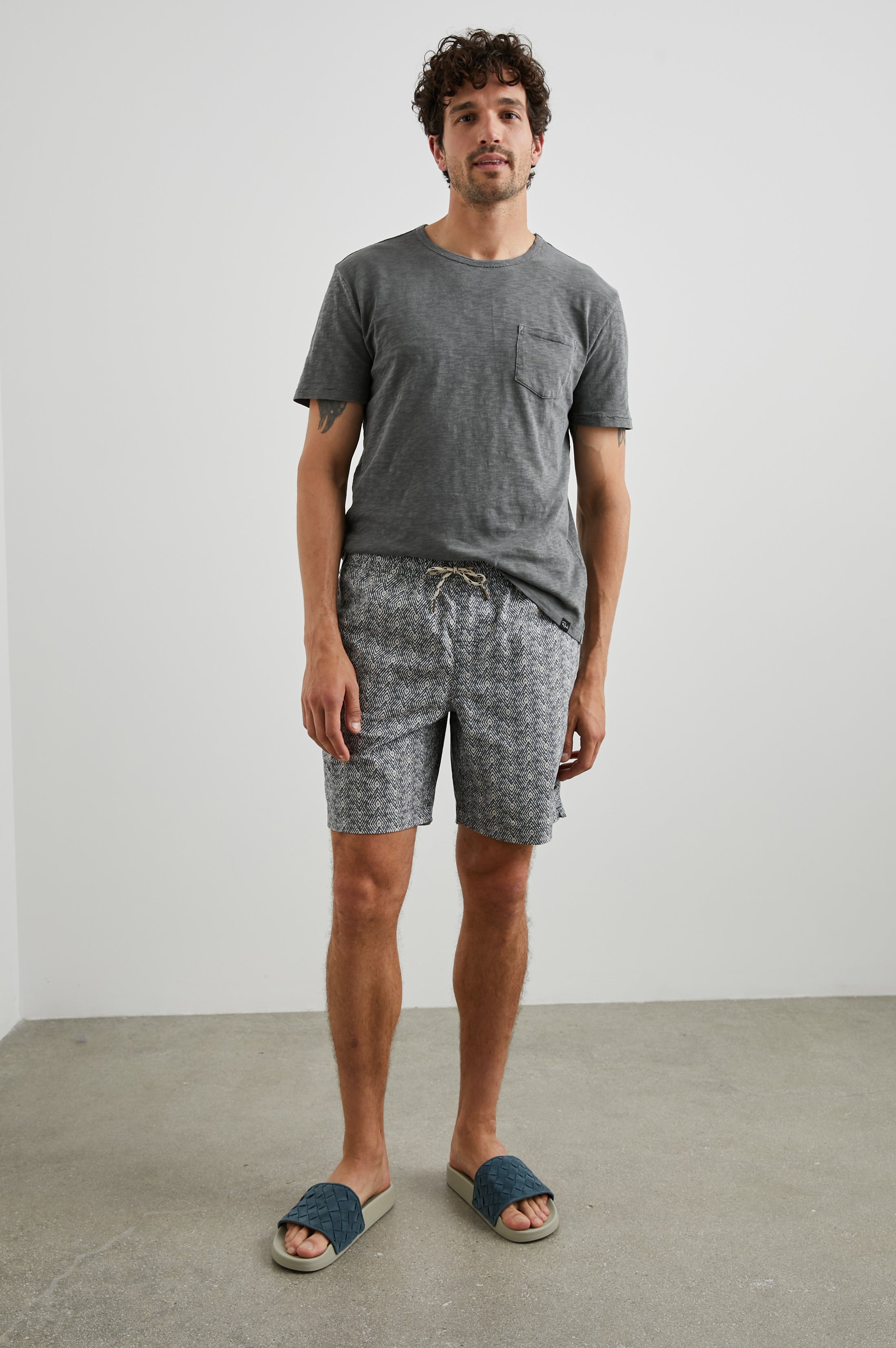 The Kian Swim Short is a relaxed swim trunk that's cut from a lightweight cotton-blend for ultimate comfort and lasting quality. Designed with a custom print, this pair features a tribal-inpsired print with an elastic drawstring waistband, mesh ventilated pockets, and a wallet-sized back pocket. Versatile and performance-ready, it can be worn poolside, on the beach, or on a run.