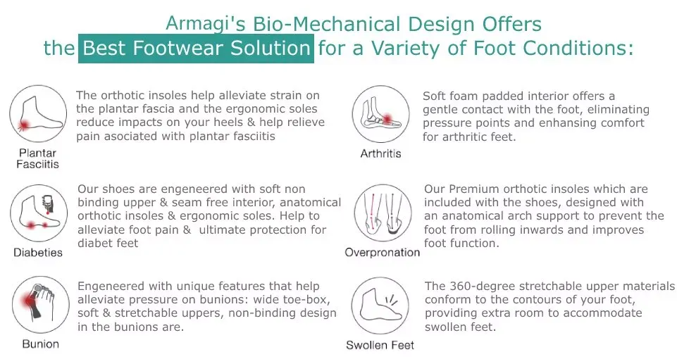 ✅ Cushioning - The orthopedic shoes offer cushioning under the entire foot for optimal comfort. The sole contains a special gel that absorbs shock better than any other sole.