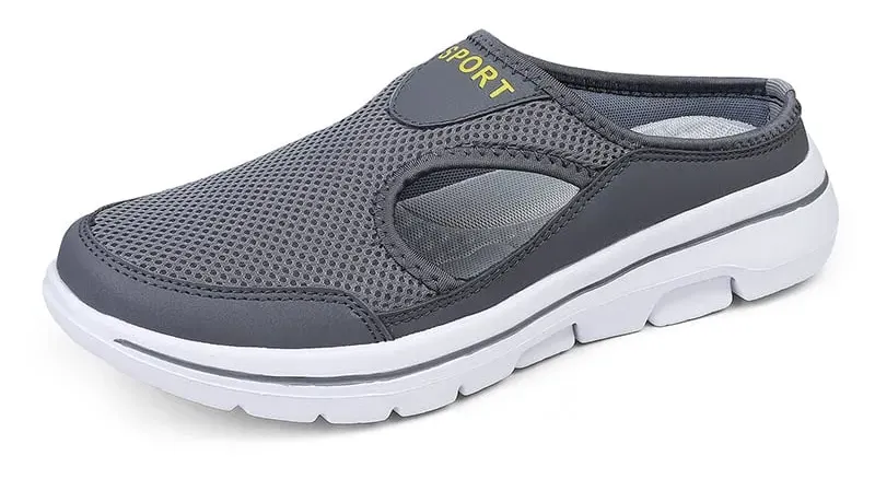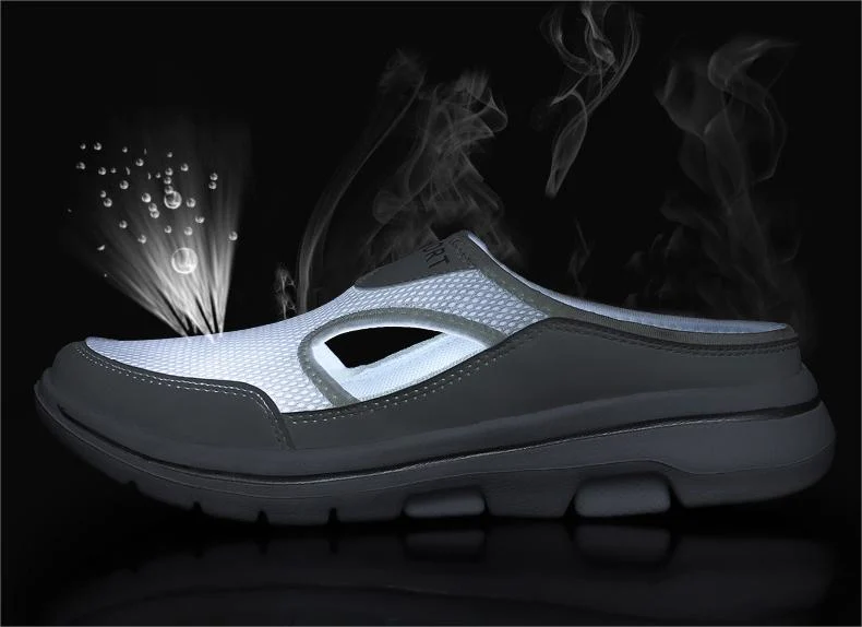 Men's mesh toe half slippers are a type of footwear designed for casual wear. They typically have a breathable mesh upper that allows for ventilation and helps keep feet cool and dry. The toe of the slipper is exposed, providing a comfortable and convenient way to slide them on and off. The half design refers to the fact that the slipper does not cover the entire foot, leaving the heel exposed. These slippers may also have a flexible and durable sole for added comfort and support.