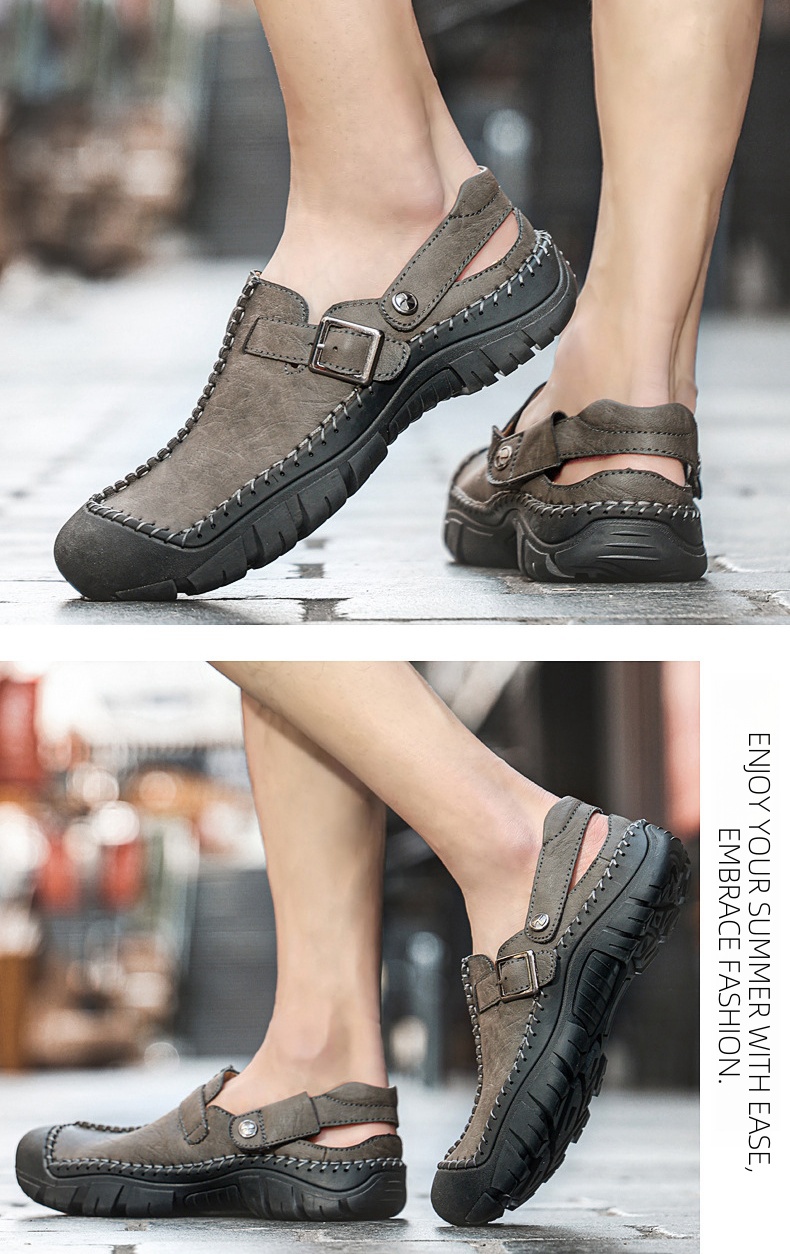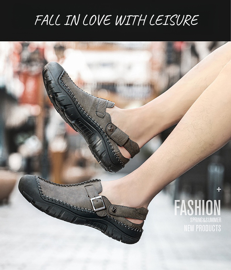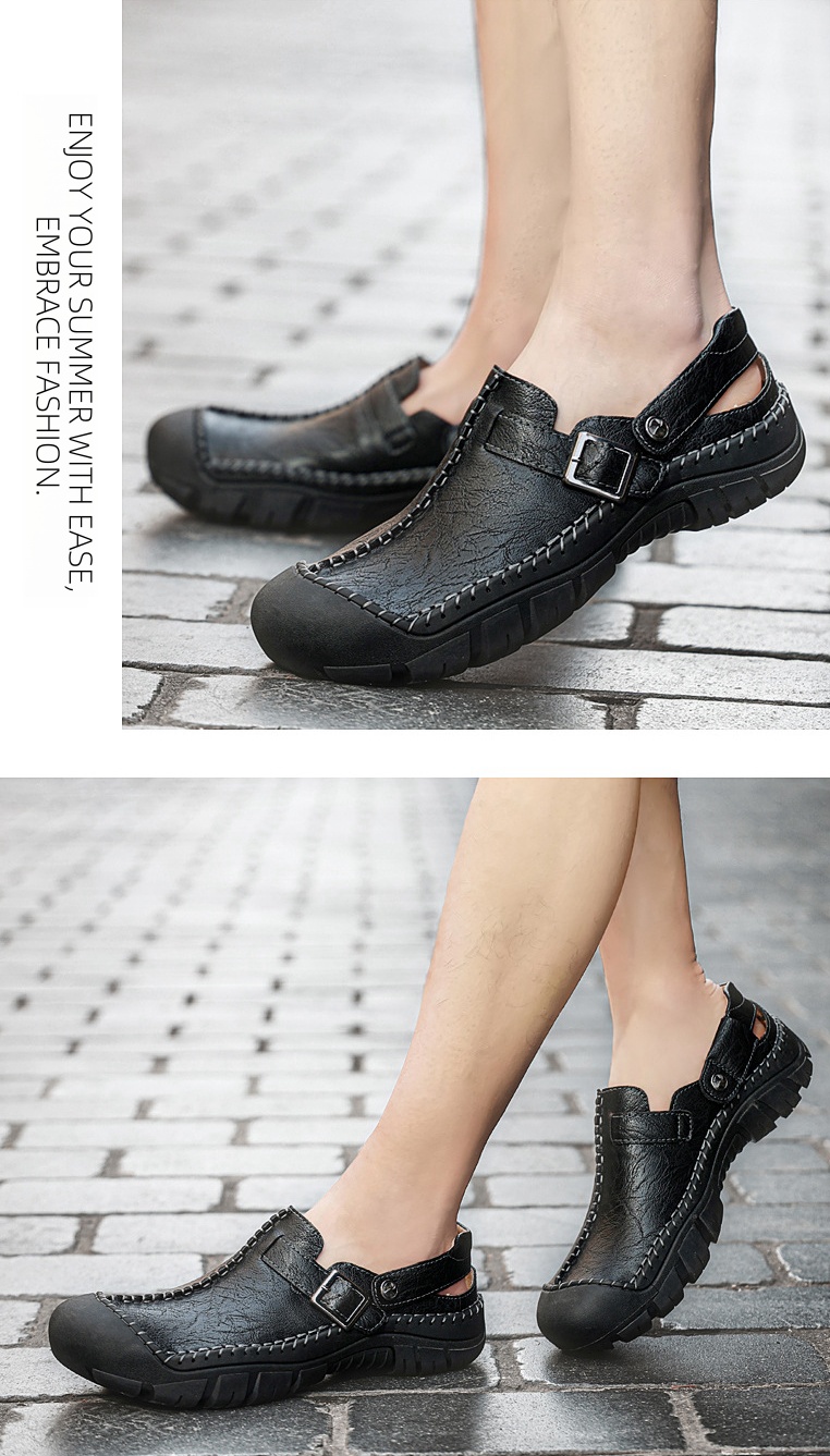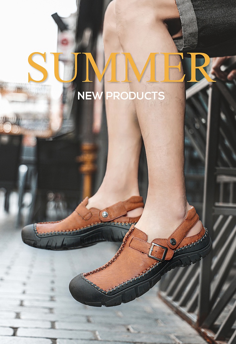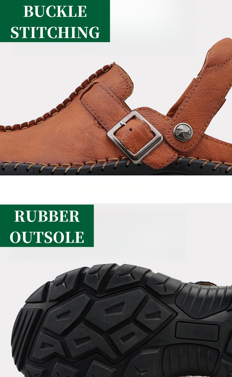 Step into summer fashion with confidence in our Men's Summer Comfort Casual Creeper Closed-Toe Flat Leather Sandals. The iconic toe bumper offers additional safety, while the sleek design adds a touch of sophistication to your summer wardrobe.