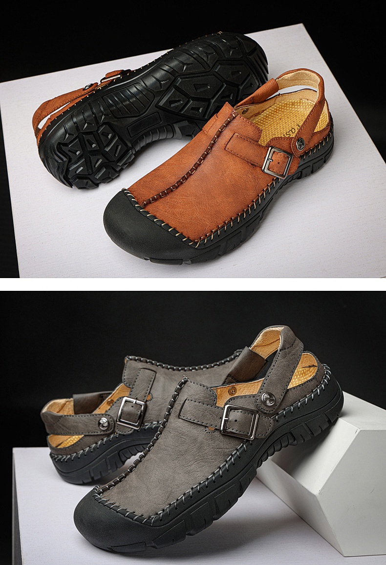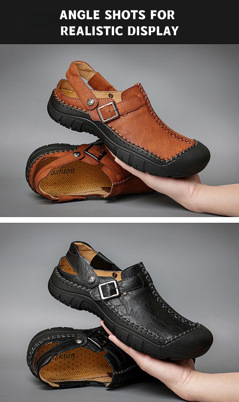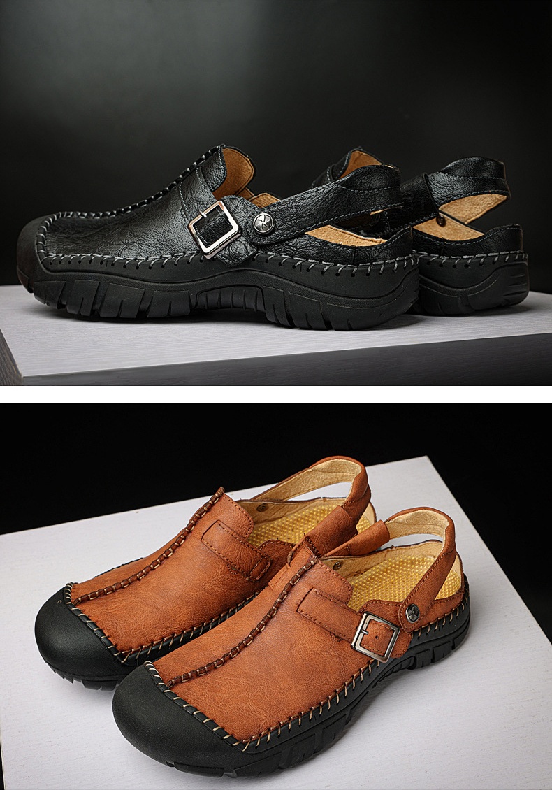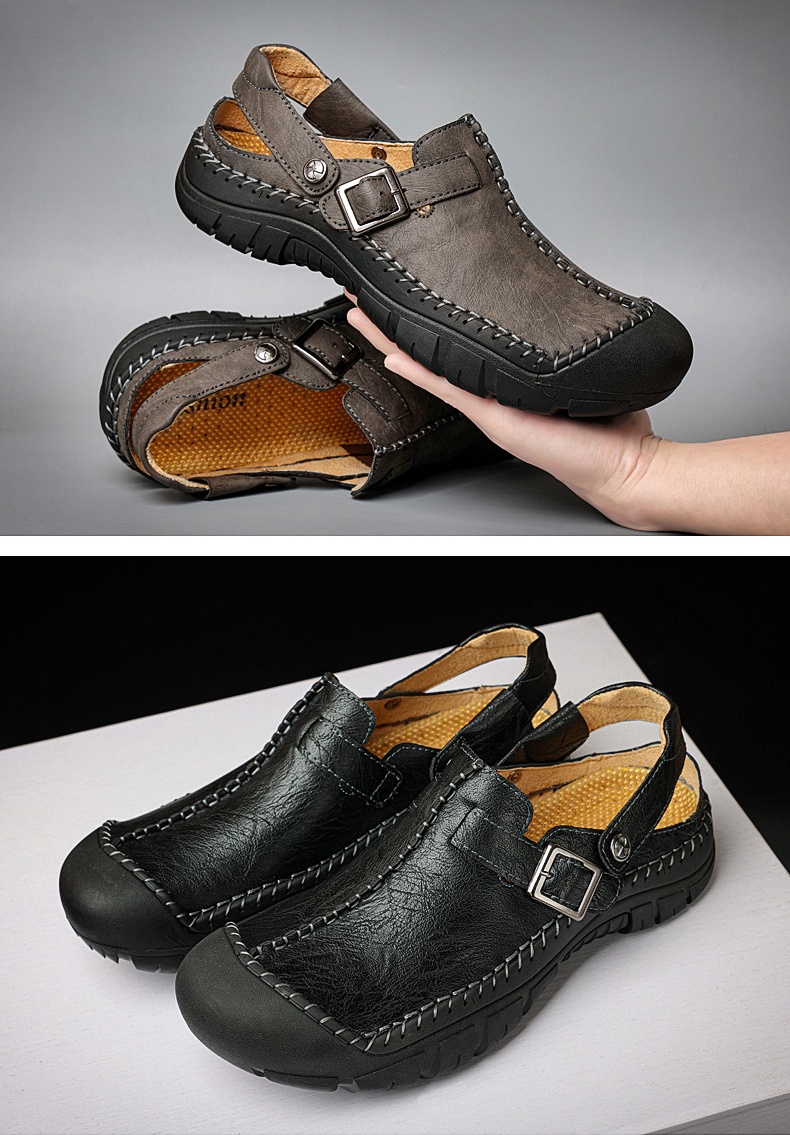 Step into summer fashion with confidence in our Men's Summer Comfort Casual Creeper Closed-Toe Flat Leather Sandals. The iconic toe bumper offers additional safety, while the sleek design adds a touch of sophistication to your summer wardrobe.