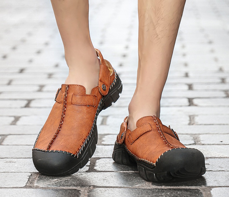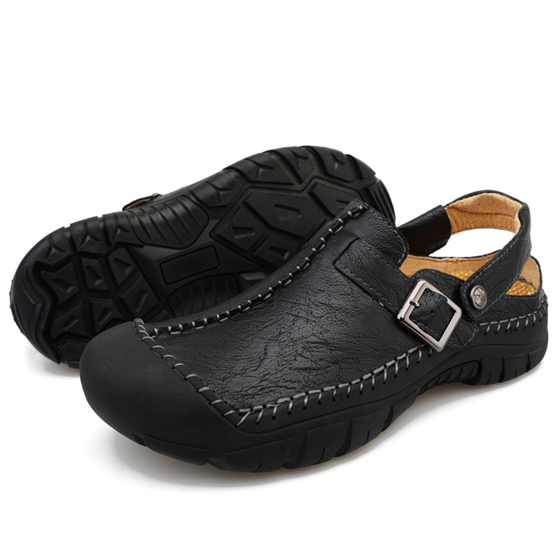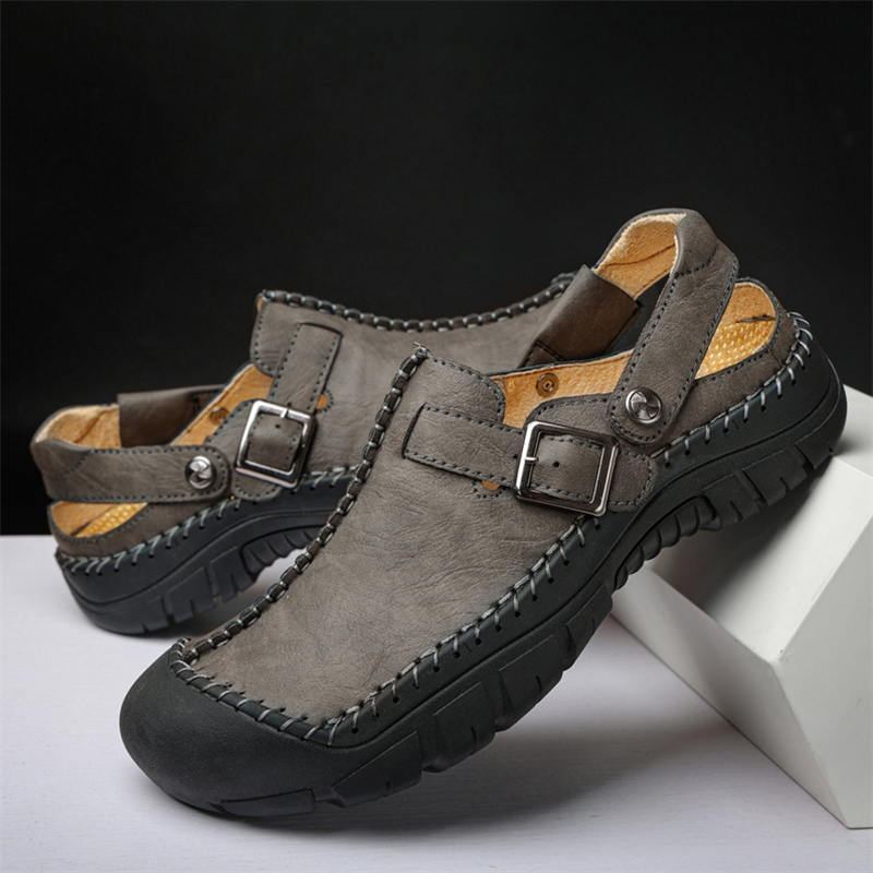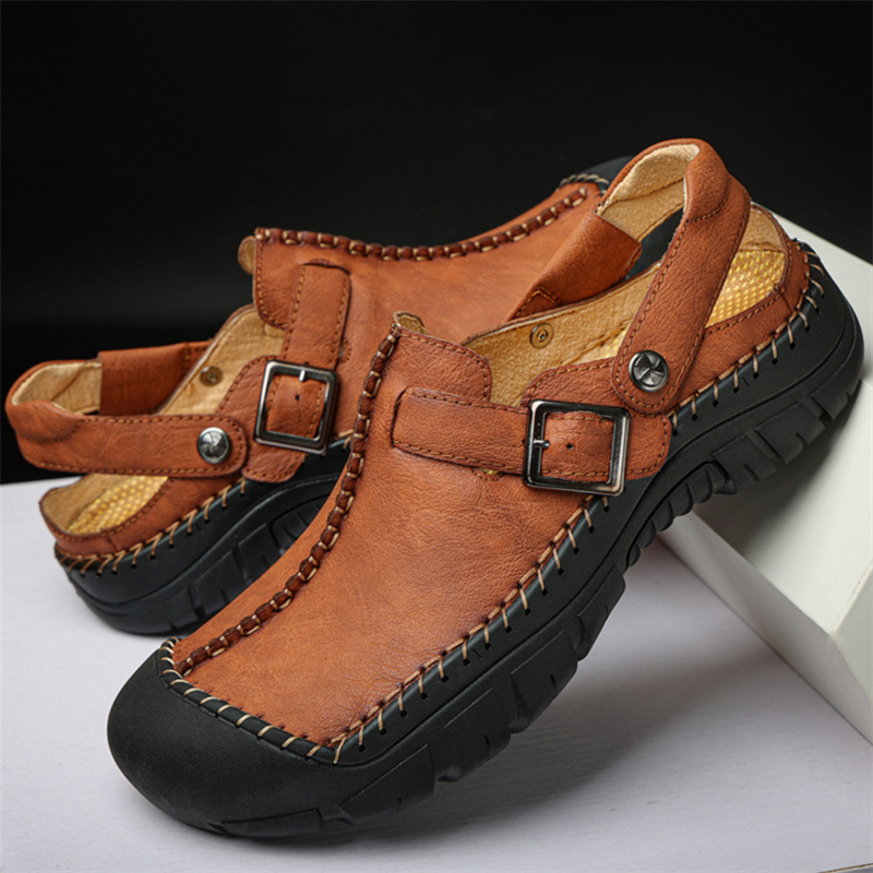 Men's Summer Comfort Casual Creeper Closed-Toe Flat Leather Sandals