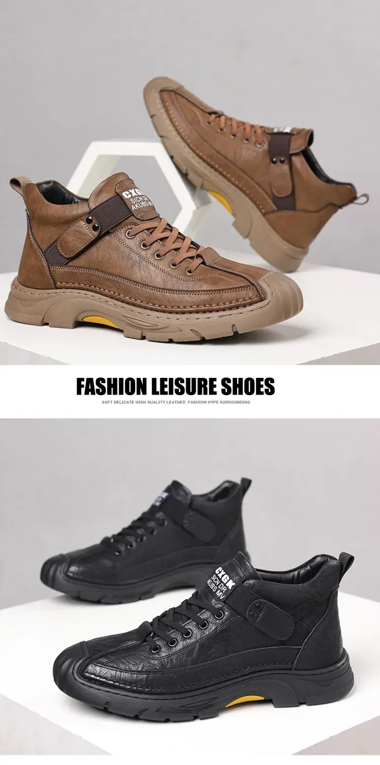Men's winter wool lined boots warm cotton shoes outdoor leather boots