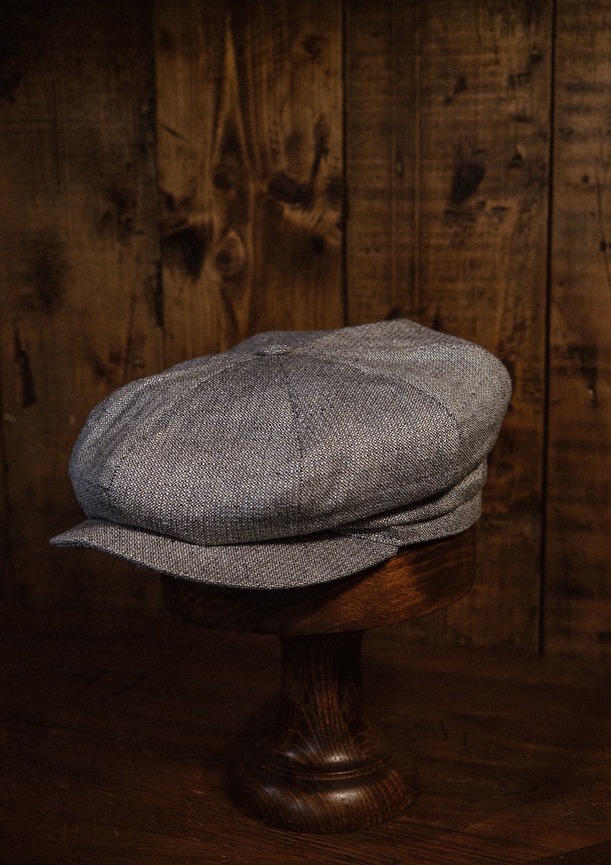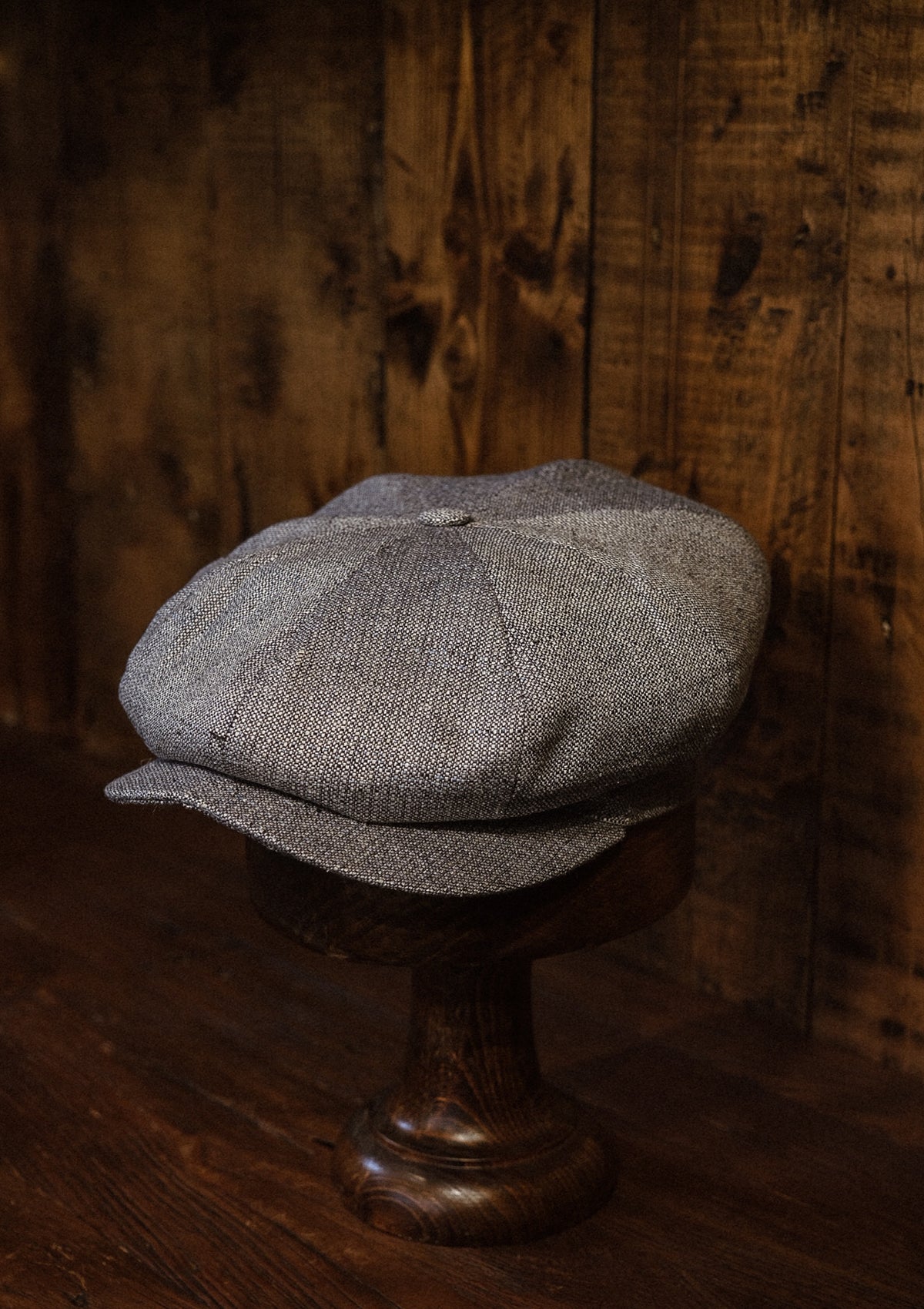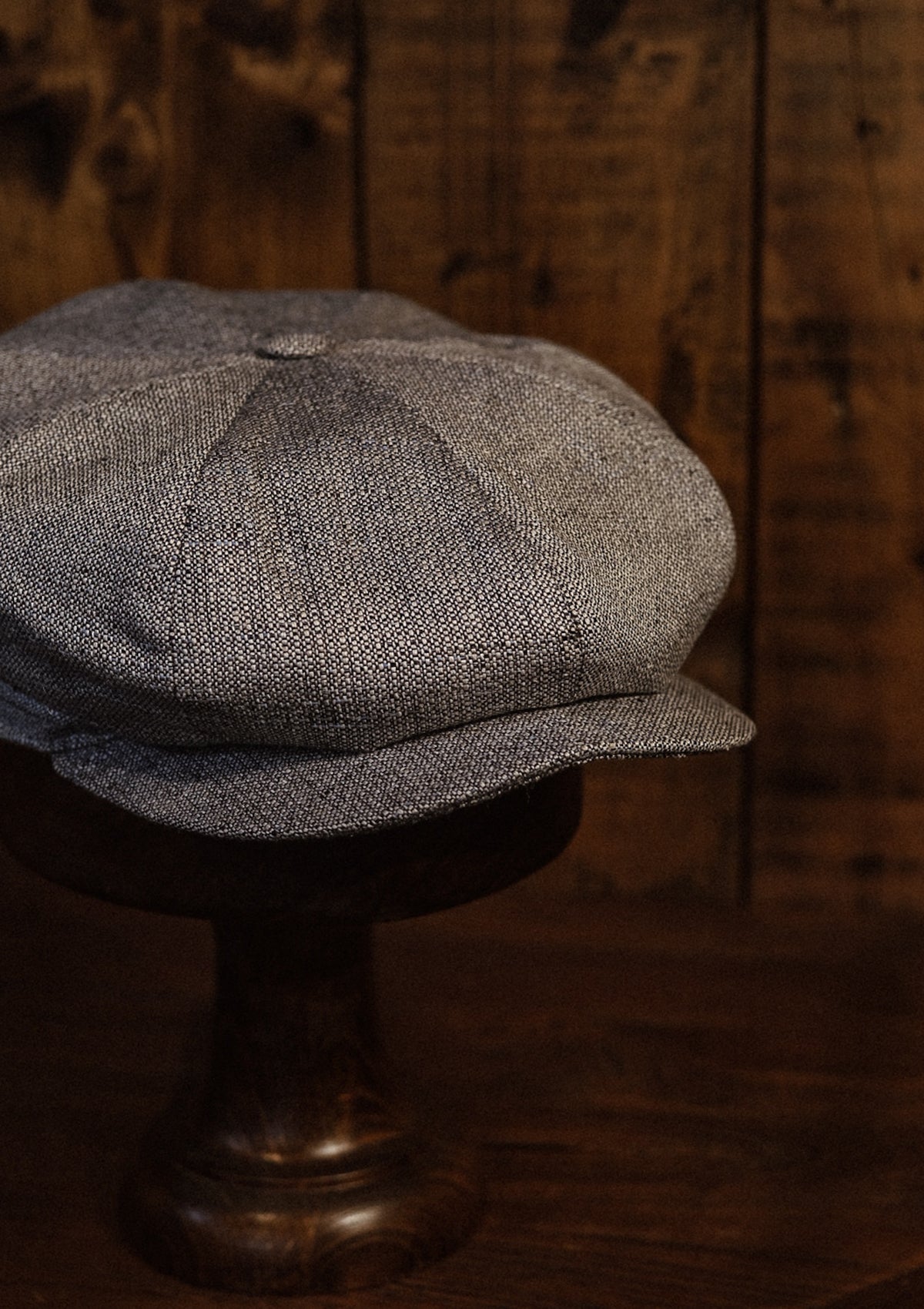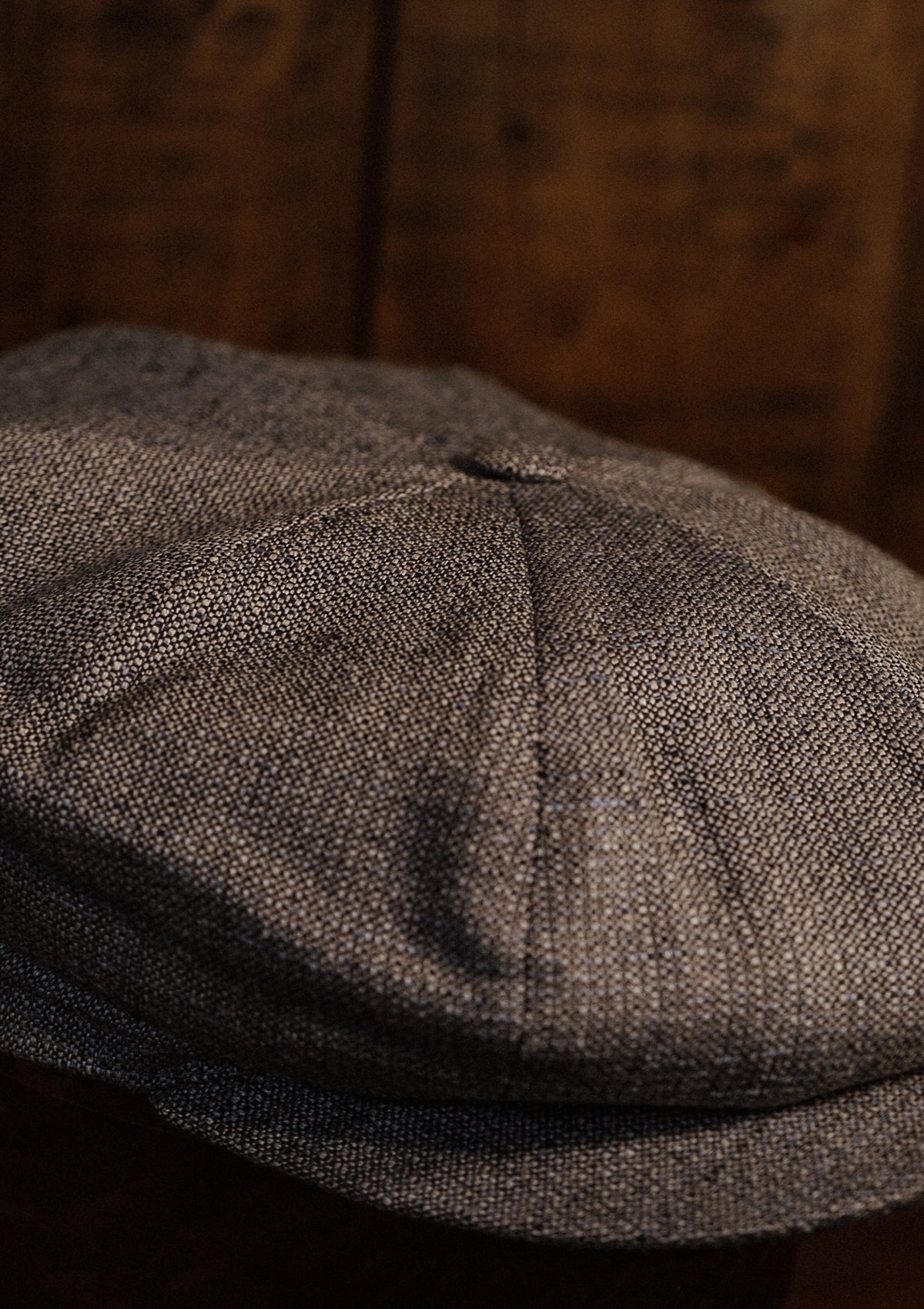The Regent Bakerboy is a Classic, narrow width 8-piece Baker Boy cap, made from 70% Linen, 20% Cotton and 10% Silk