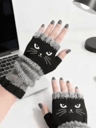 Stay warm and adorable this winter with these cozy knitted fingerless gloves featuring charming cat details.