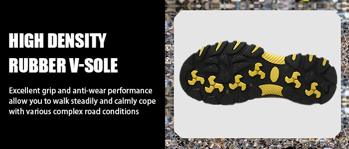 The rubber outsole specially developed for anti-slip, anti-oil and anti-cutting can provide excellent grip and wear resistance at wet, oily or sharp debris scattered work sites, and can calmly cope with various complex road conditions.