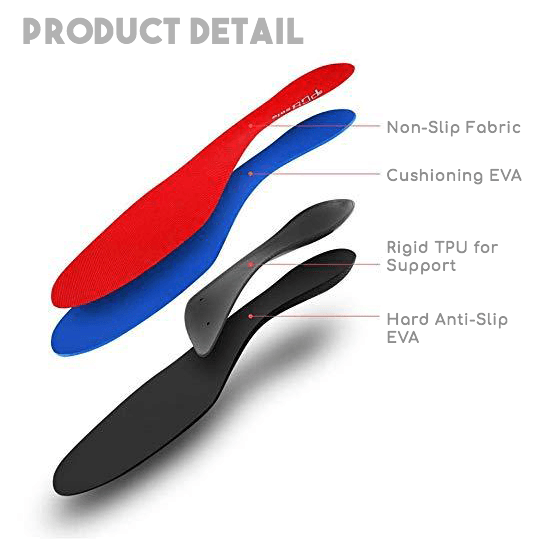 The premium orthotic insoles, featuring anatomical arch support help improve foot and leg alignment, enhancing comfort and easing stress and pain on the heel