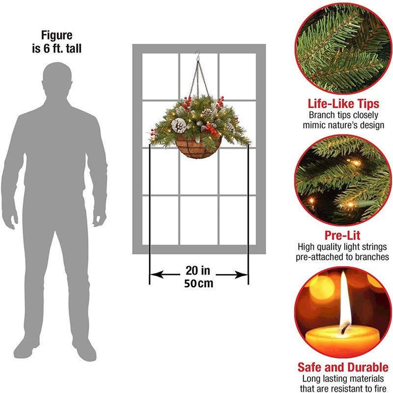 Constructed with sturdy, high quality materials and hypo-allergenic, fire-resistant needles, this hanging basket is built to bring holiday cheer for years to come. Includes a durable metal hanging base.