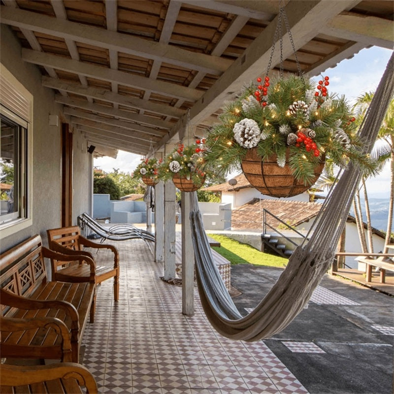 FESTIVE APPEAL: A delightful way to add instant Christmas spirit to any indoor or outdoor space. With 84 individually crafted branch tips, this hanging Christmas plant is as charming as the real thing.