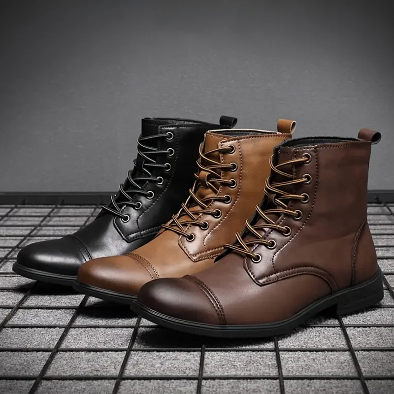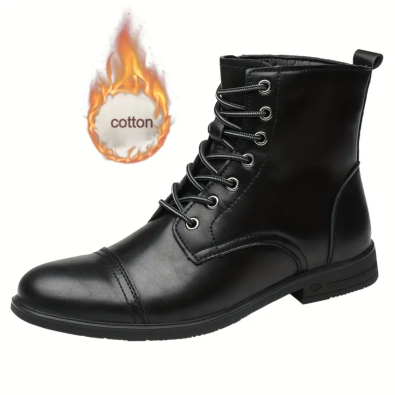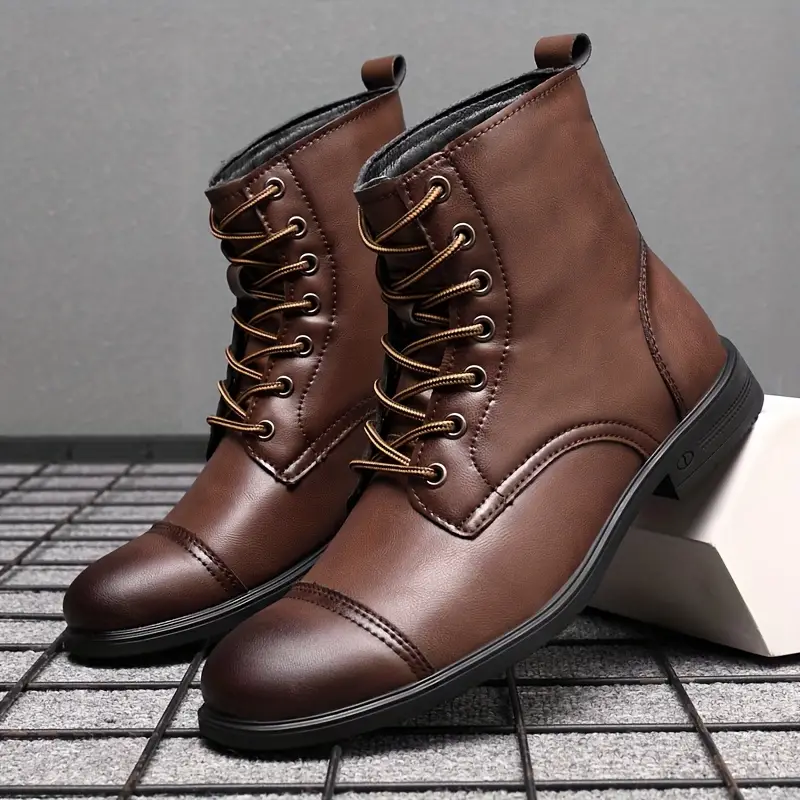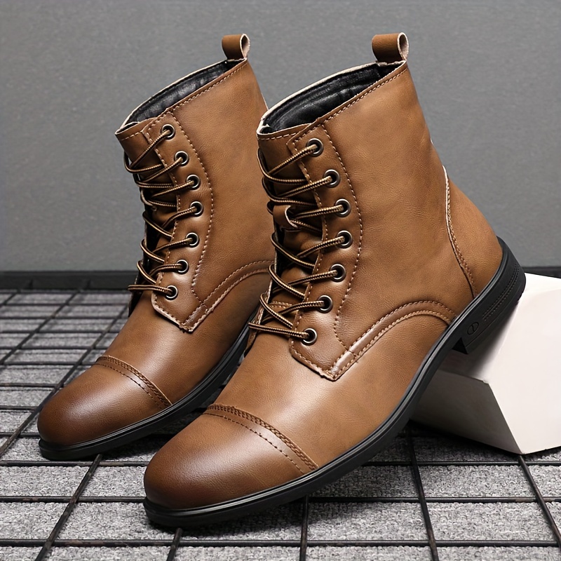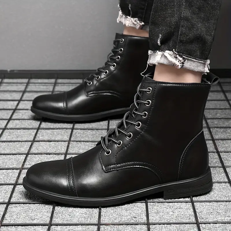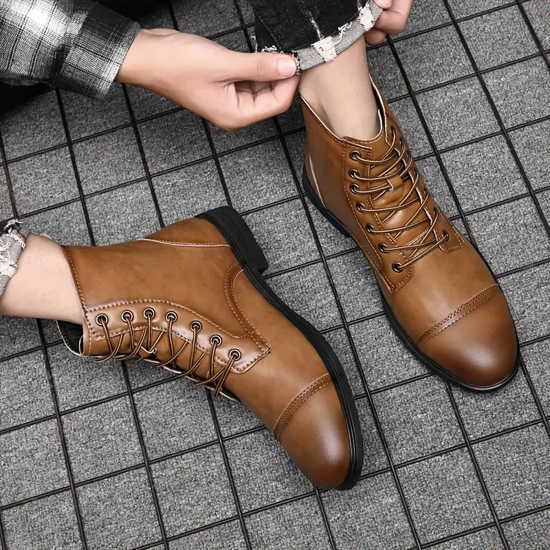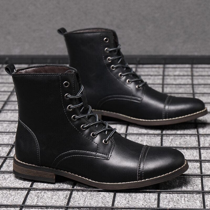 Italian Men's High-top Leather Boots Cap Toe Waterproof Wear-resistant Dress Boots Work Boots