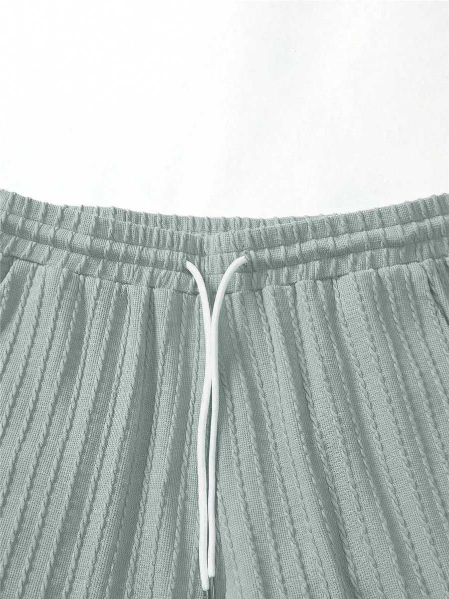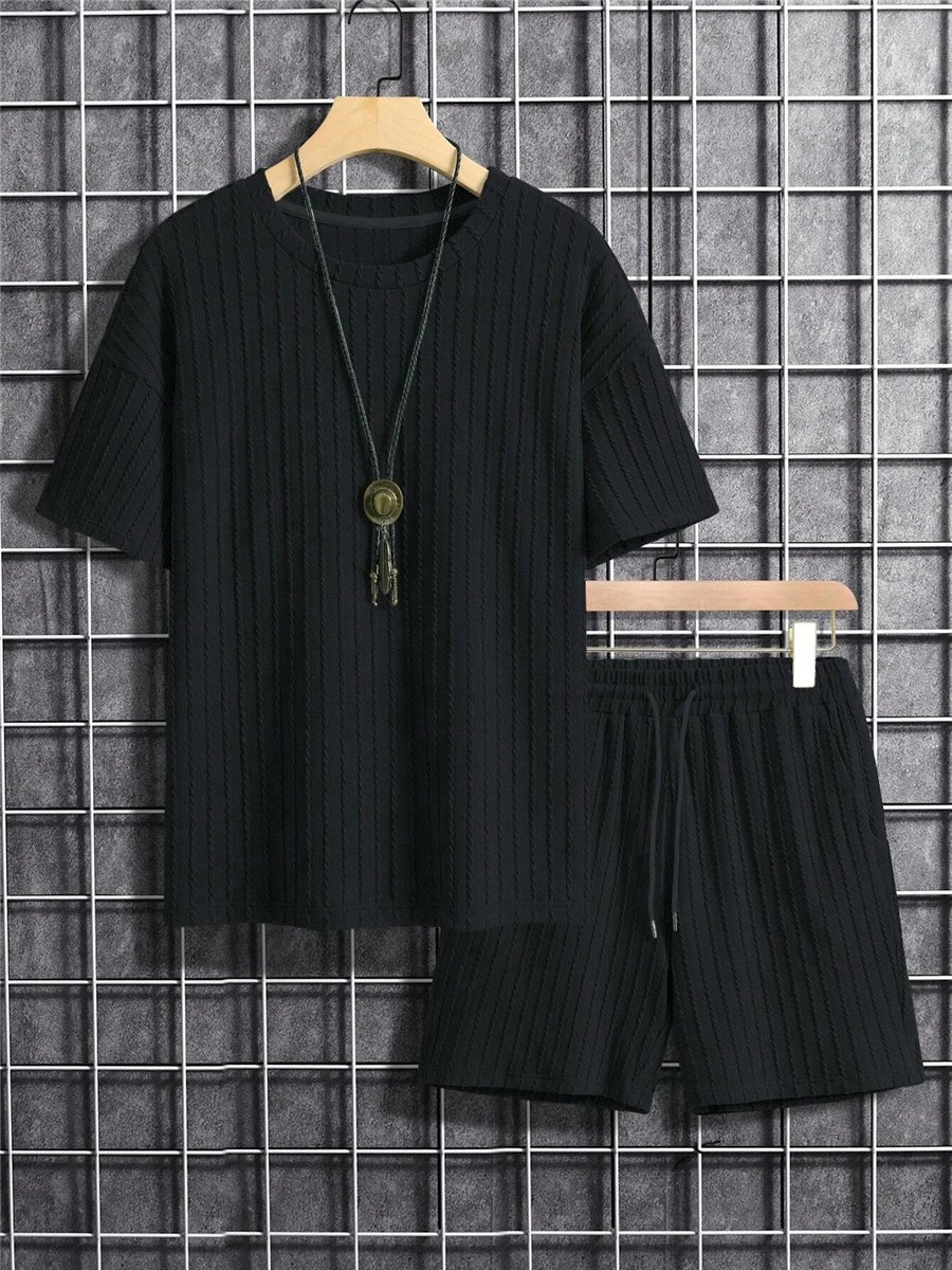 Men's 2 Piece Suits Fashion Solid Stripe Short-sleeve T-shirts Shorts