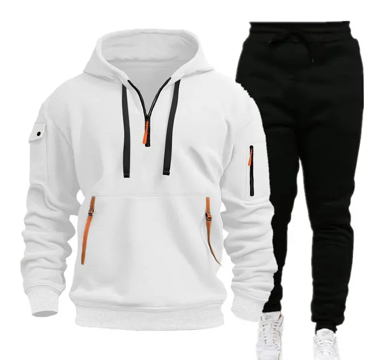 Men's Multi-Pocket Zip-Up Hoodie & Sweatpants Set