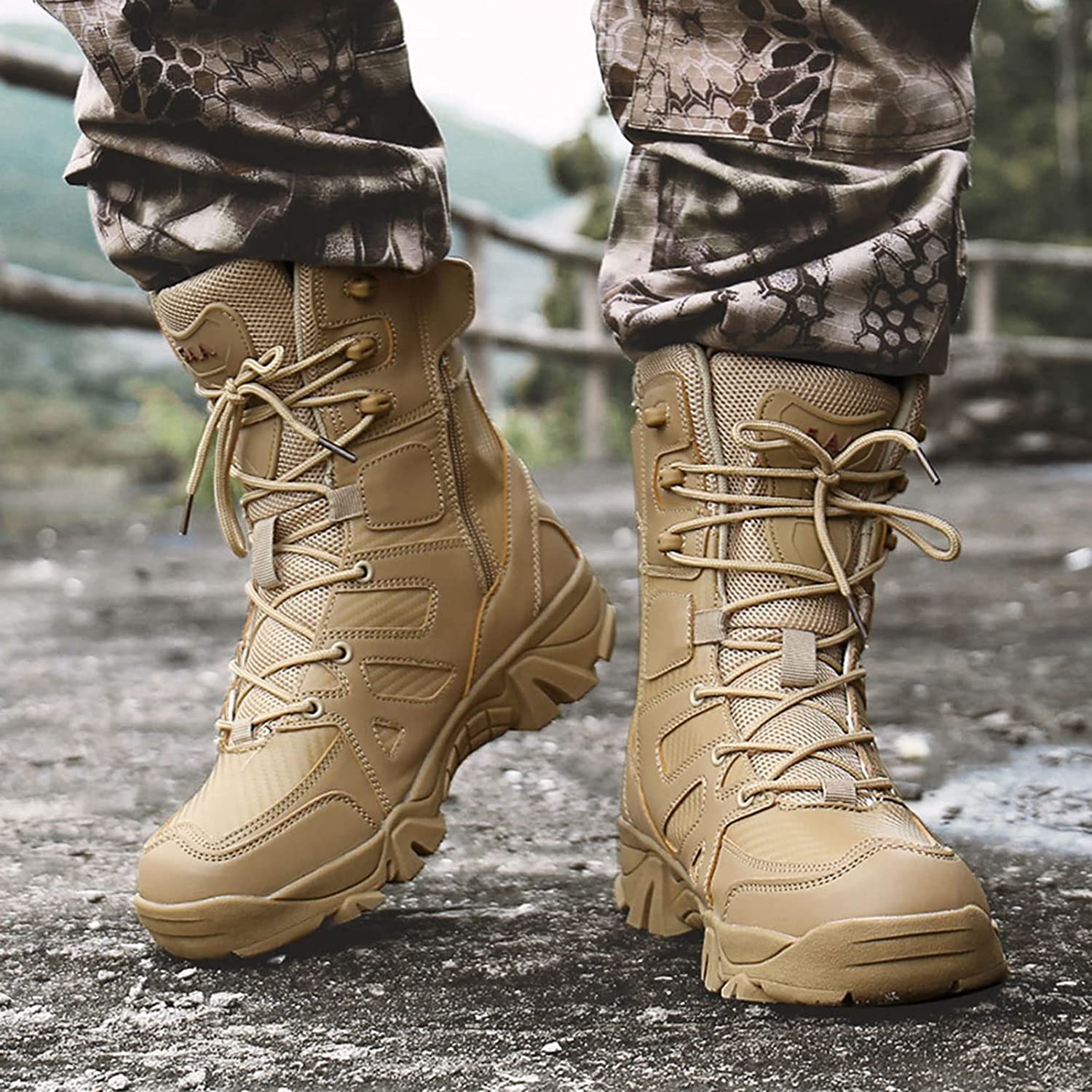 The rubber outsole of these combat boots provides excellent grip and anti-slip performance. The EVA midsole offers excellent shock absorption and flexibly responds to various terrains, making them ideal for climbing, running, or jumping.
