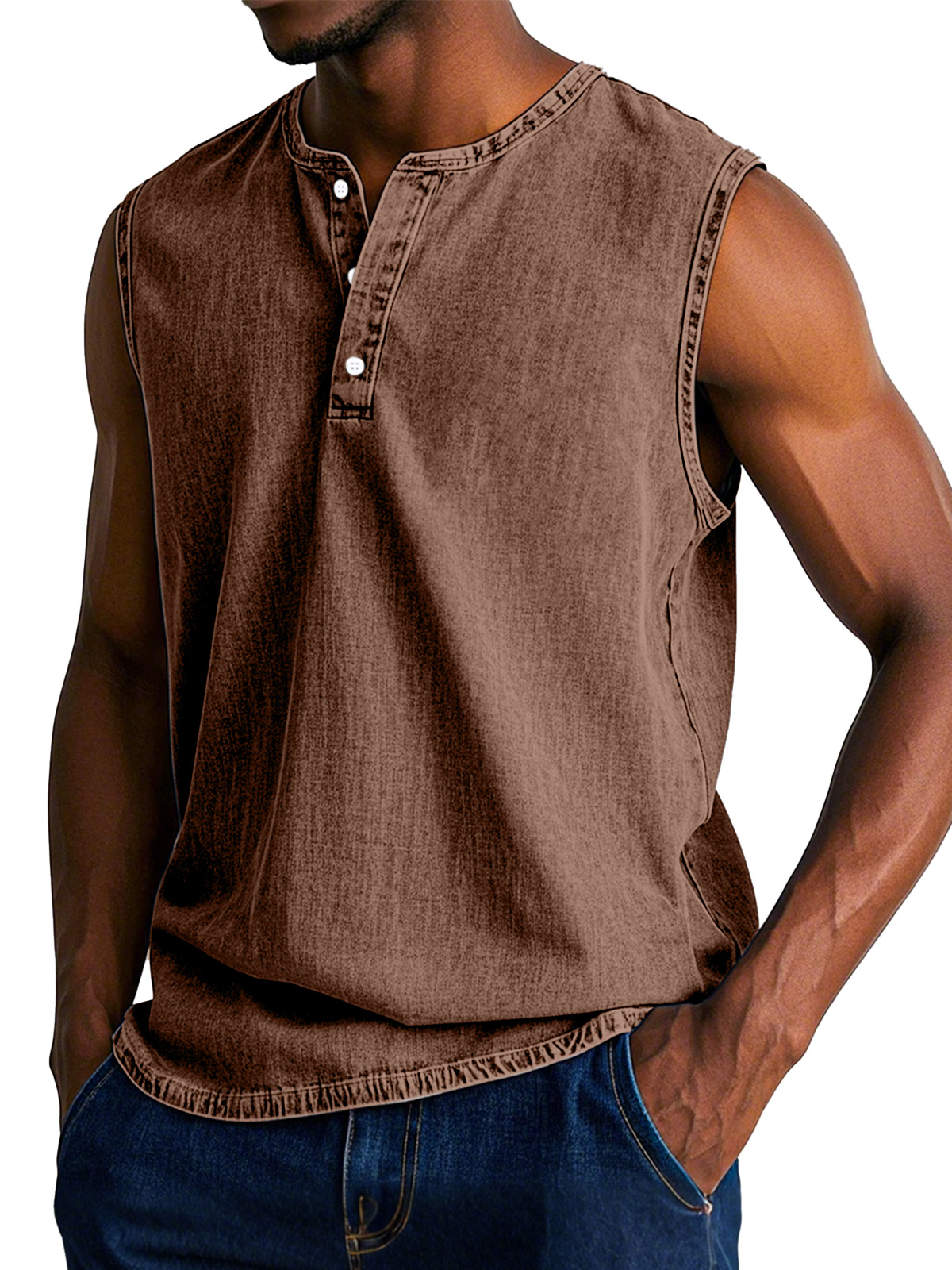 Men's Casual Retro Solid Color Loose Sleeveless Henley Shirt