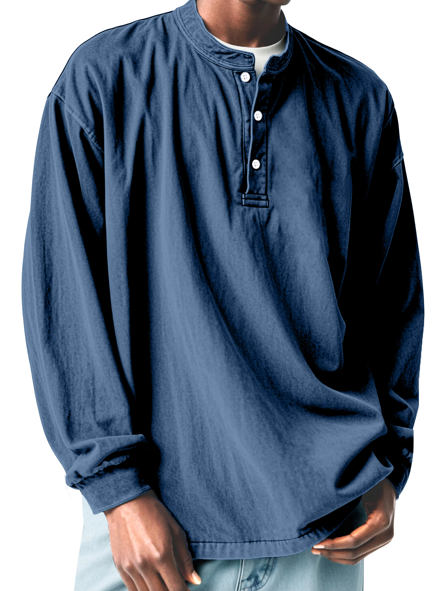Men's Casual Simple Solid Color Long Sleeve Henley Shirt