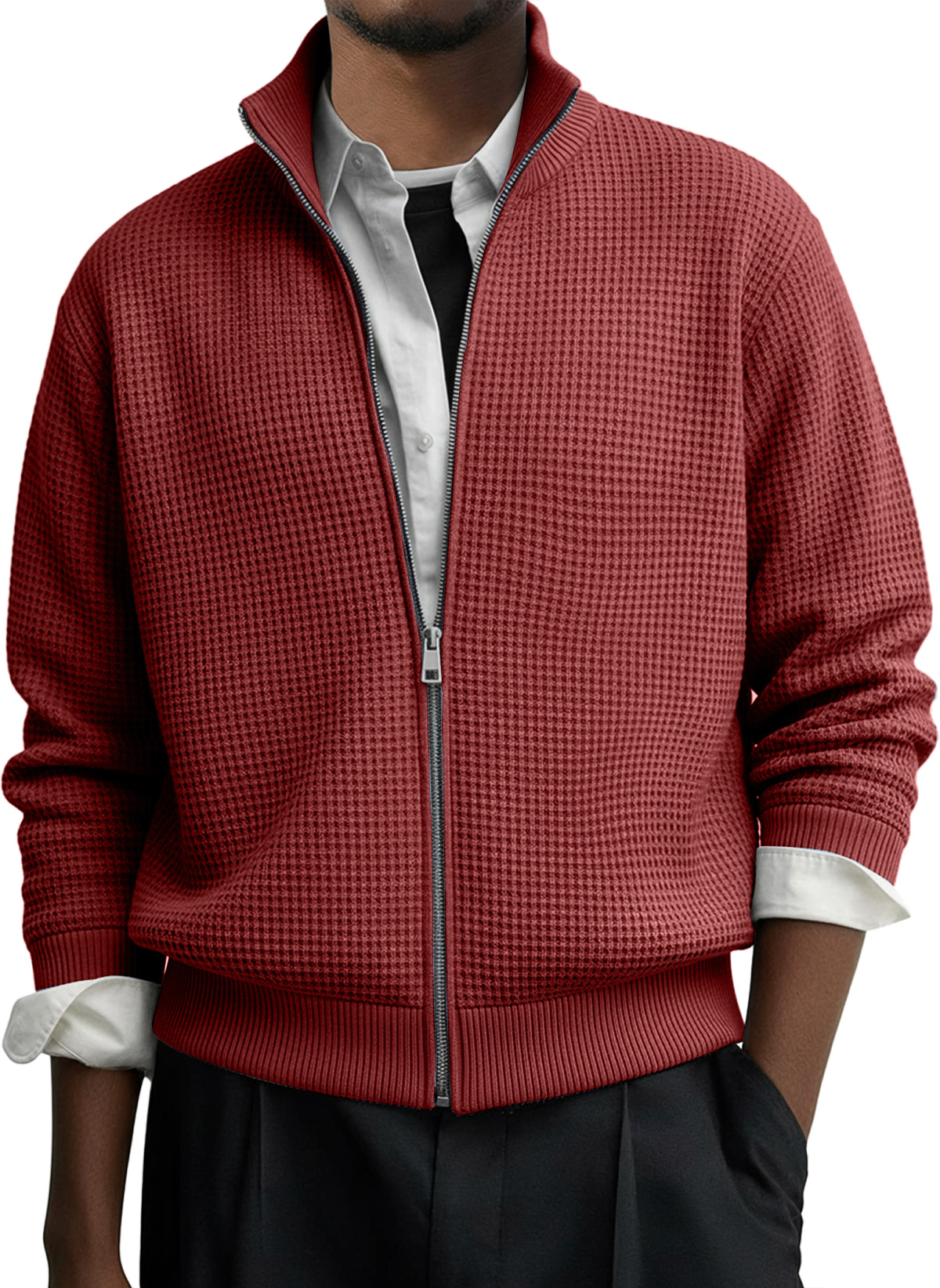Men's Casual Solid Waffle Zip-up Long Sleeved Jacket