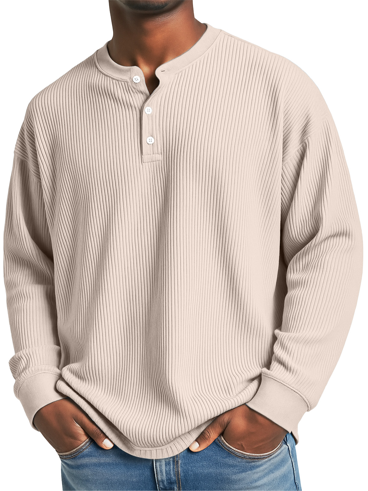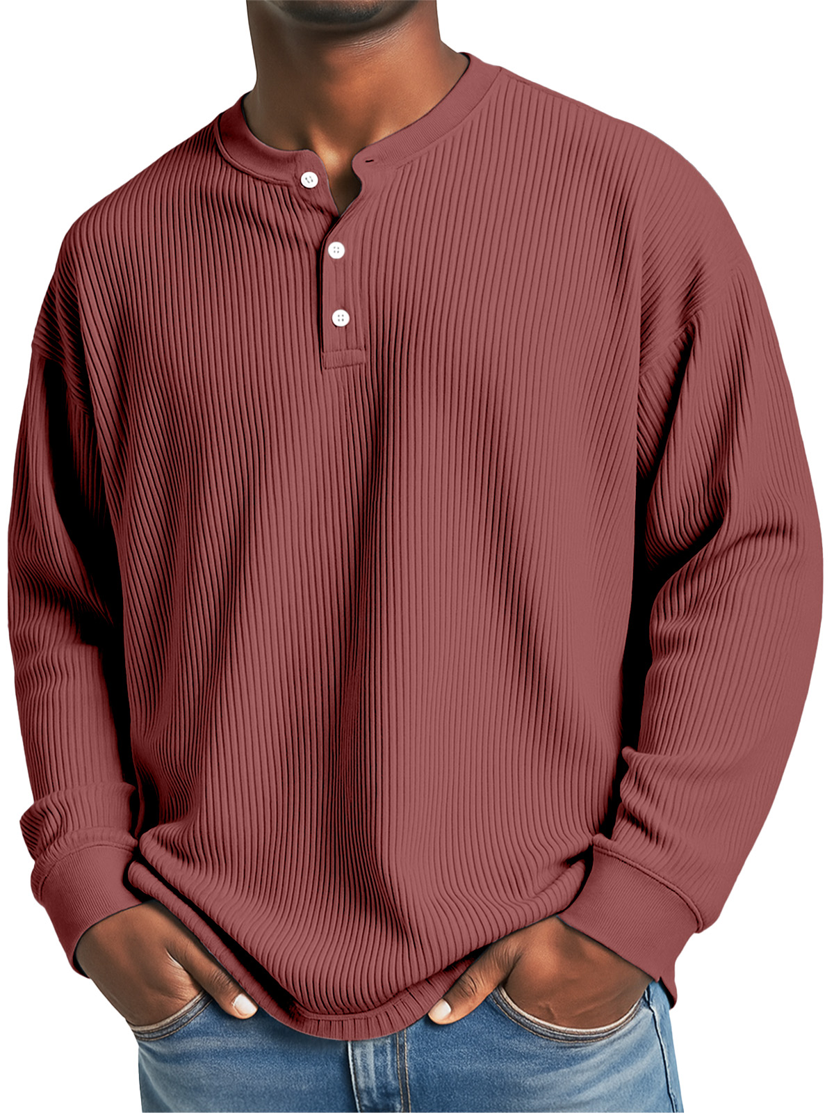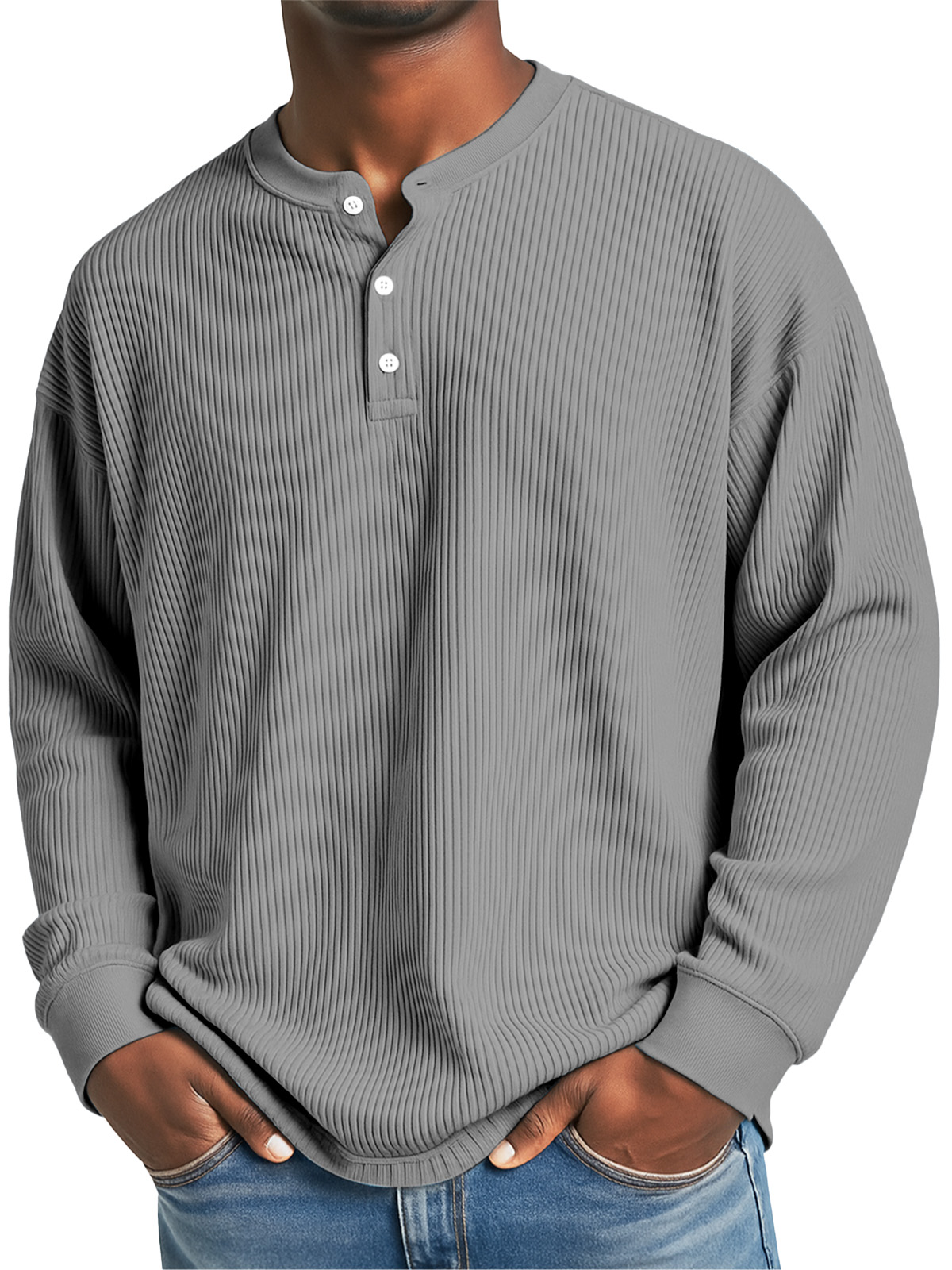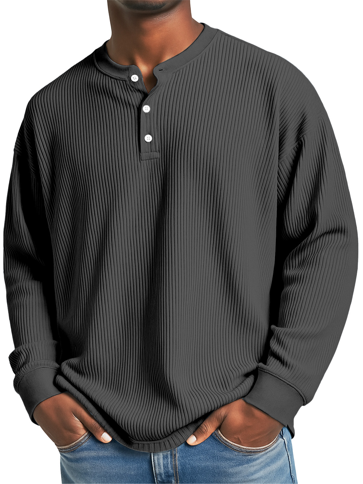 Men's Daily Casual Solid Color Pit Striped Long-sleeved Henley Shirt