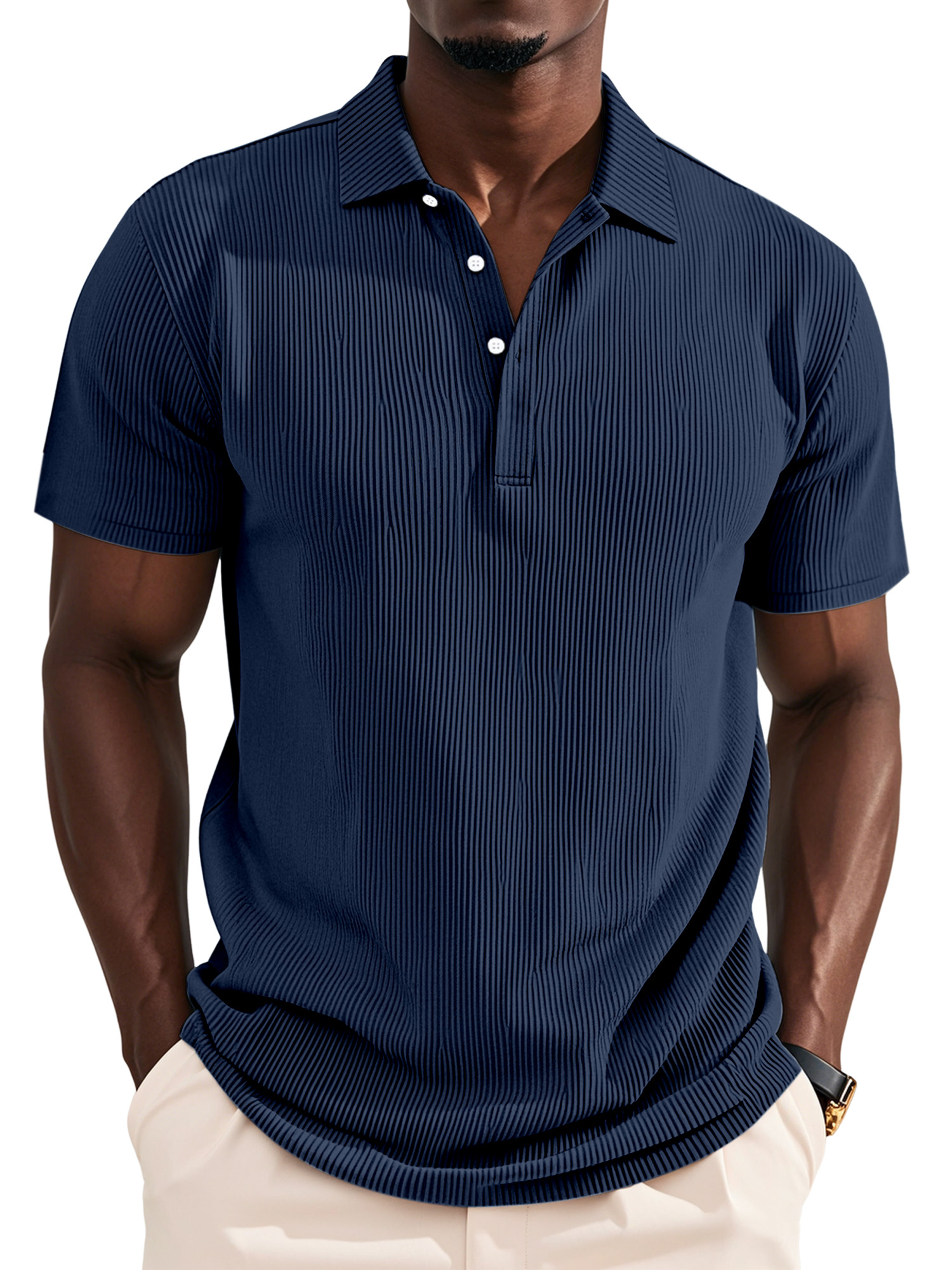 Men's Daily Solid Color Pit Button Lapel Short-sleeved Polo Shirt