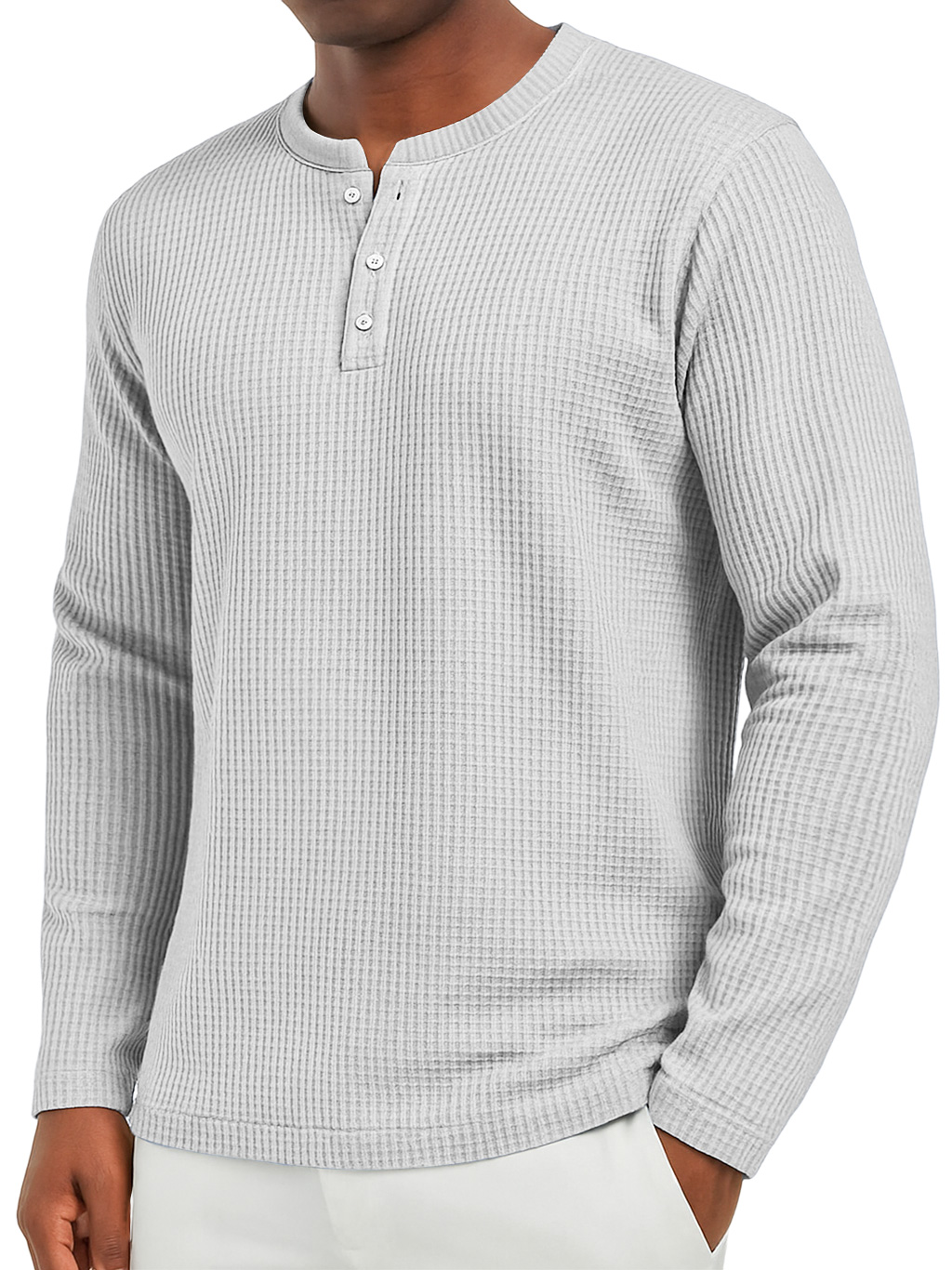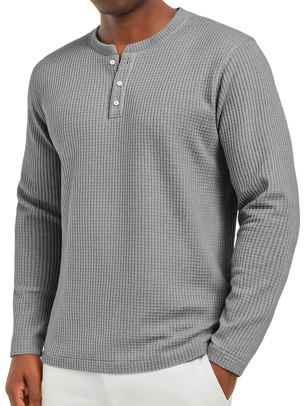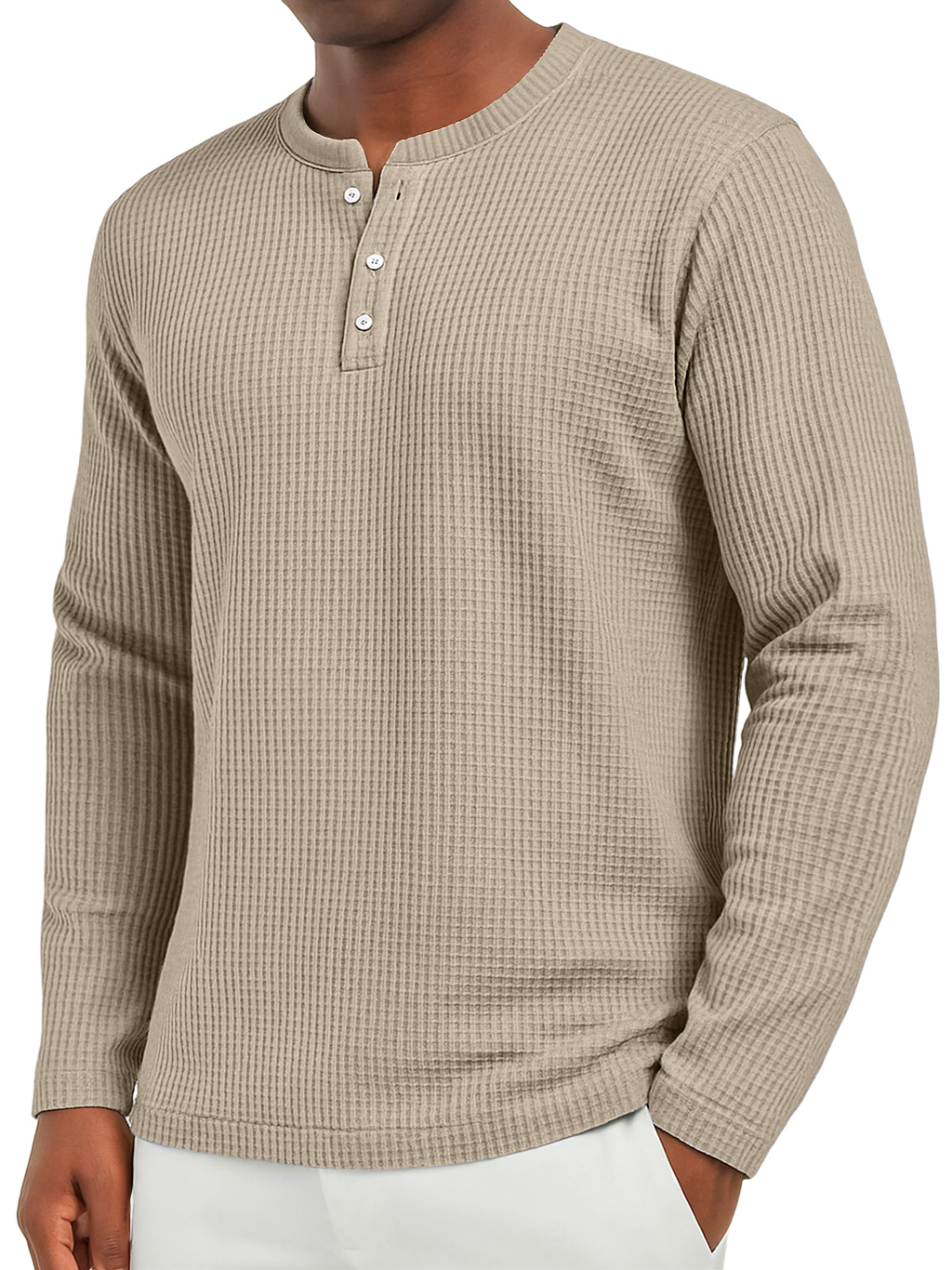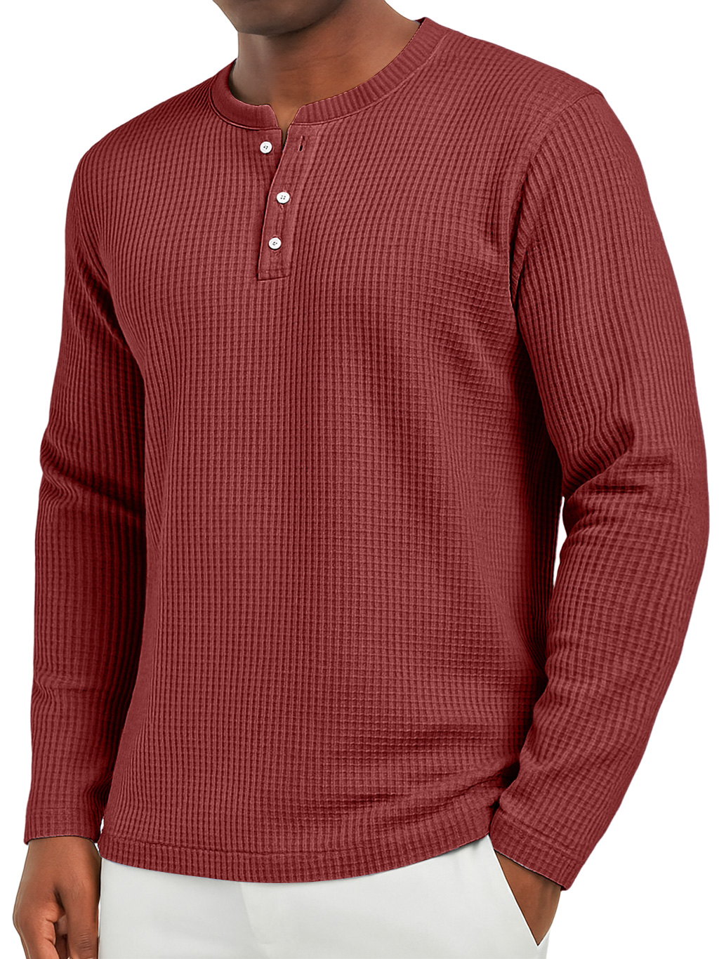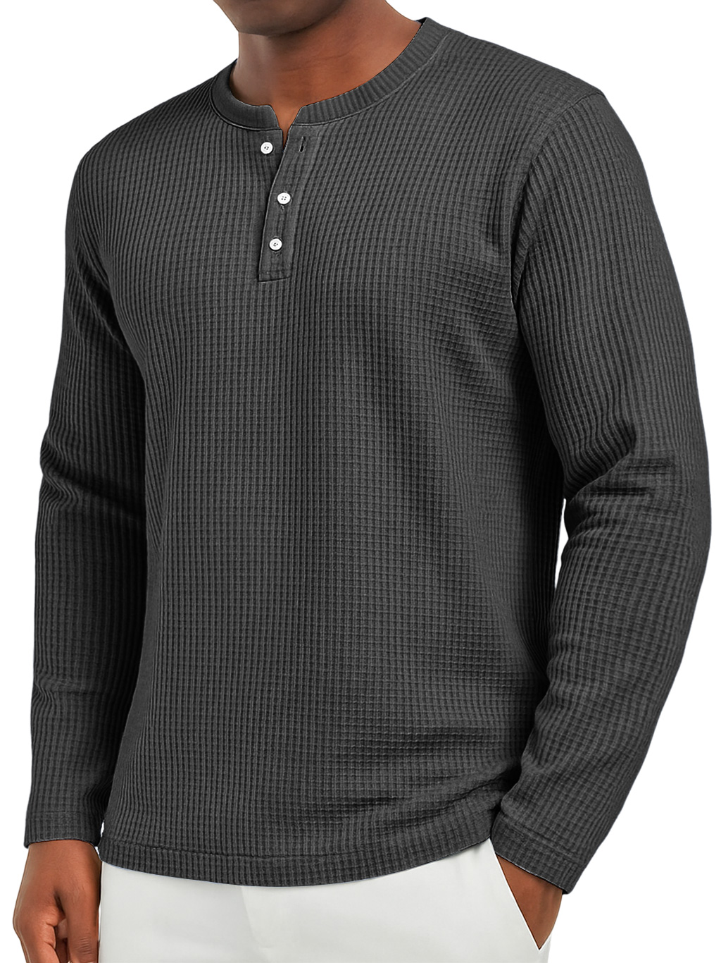 Men's Everyday Waffle Casual Button-Down Long Sleeve Henley
