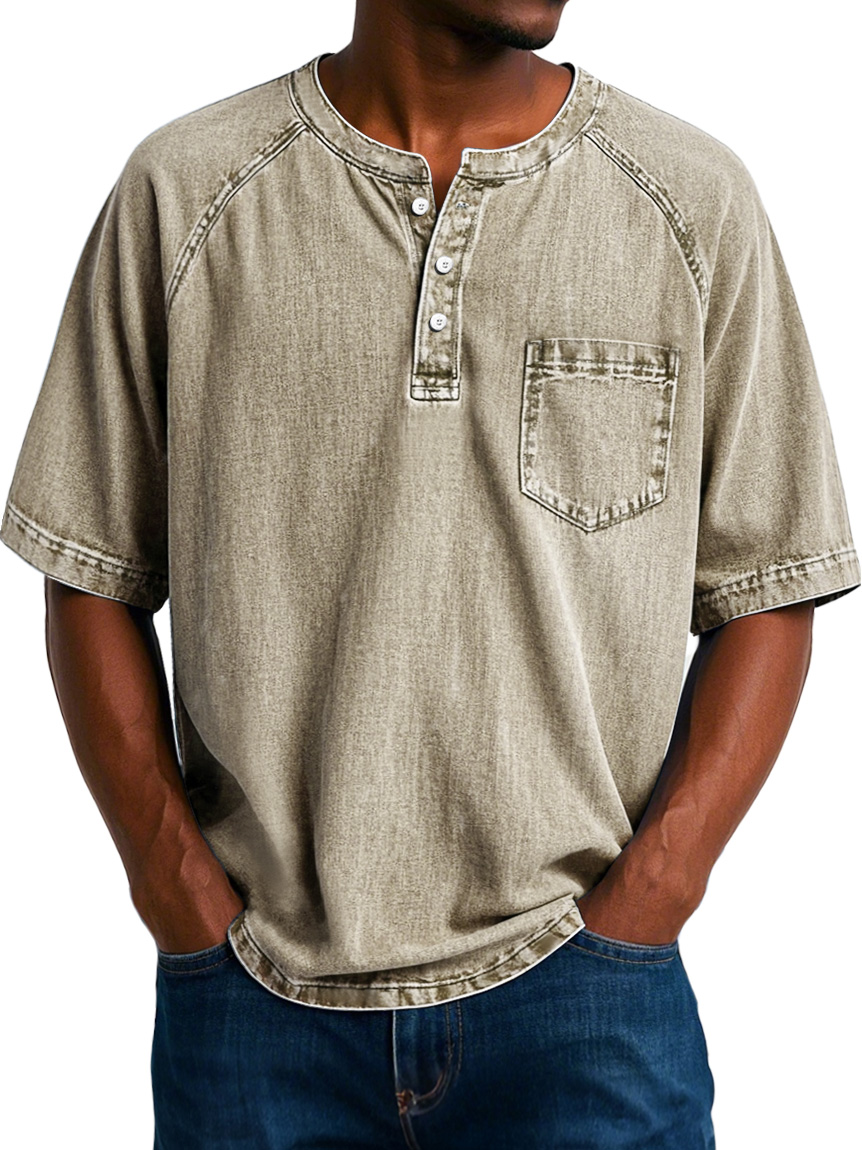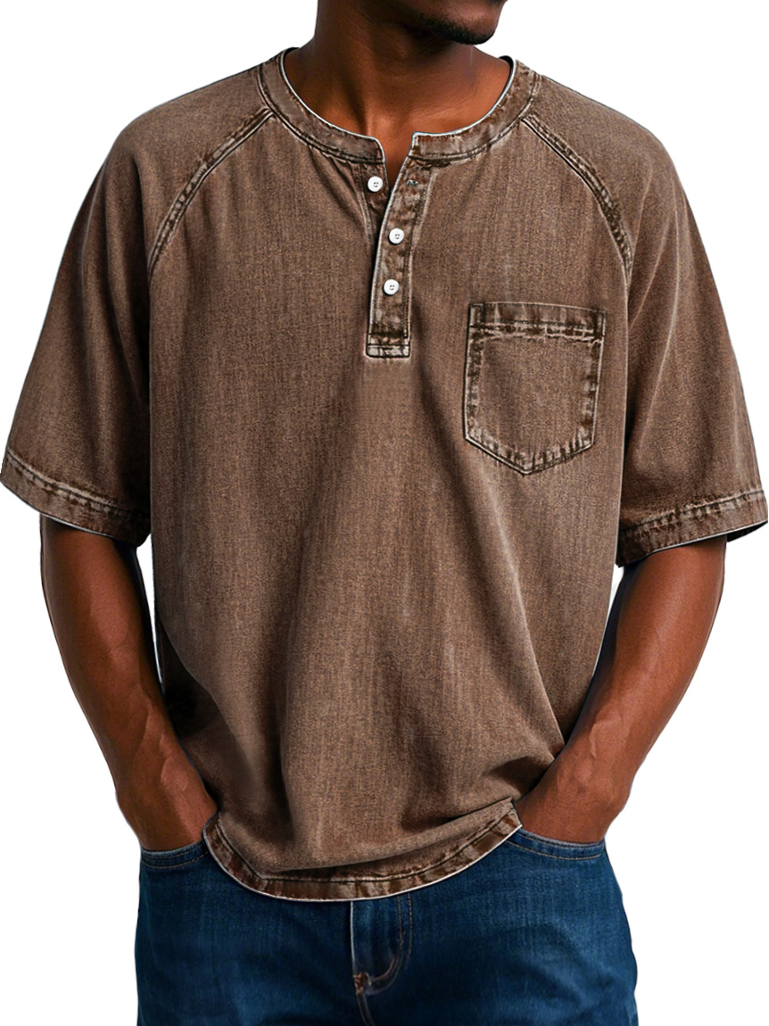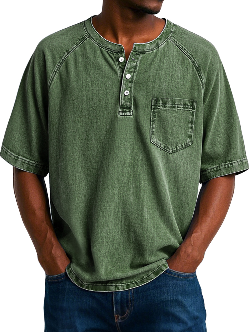 Men's Fashion Vintage Raglan Pocket Comfort Short Sleeve Henley Shirt