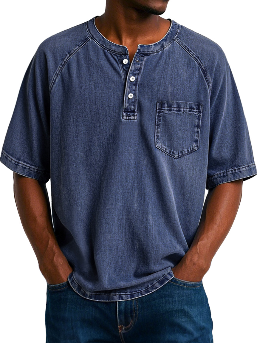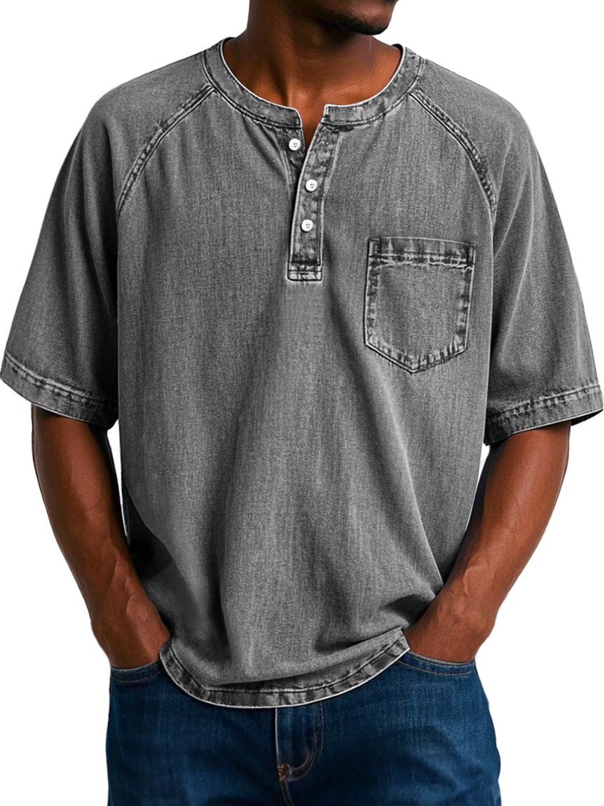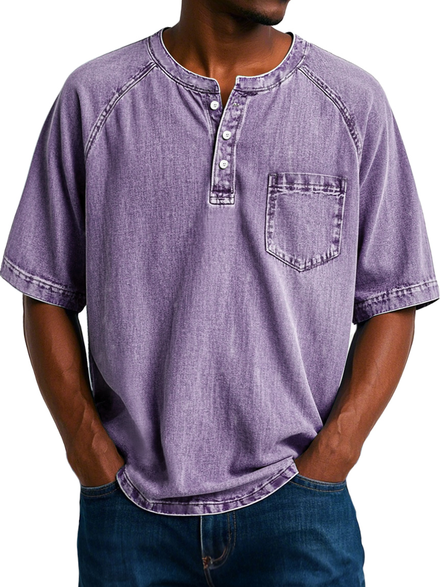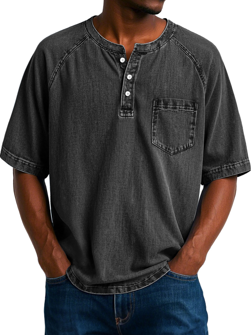 Men's Fashion Vintage Raglan Pocket Comfort Short Sleeve Henley Shirt