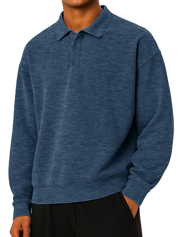 Men's Fashionable Daily Casual Lapel Long Sleeve Loose Hoodie Polo Shirt