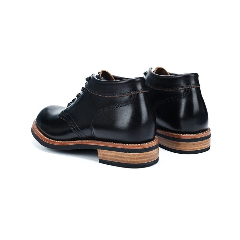 These boots are built on the 55 shoe last to provide great underneath foot support. The construction method on these is a Stitchdown versus traditional handsewn welt. You will notice the welt being much more flat to provide a cleaner look than a handsewn / rolled welt.
