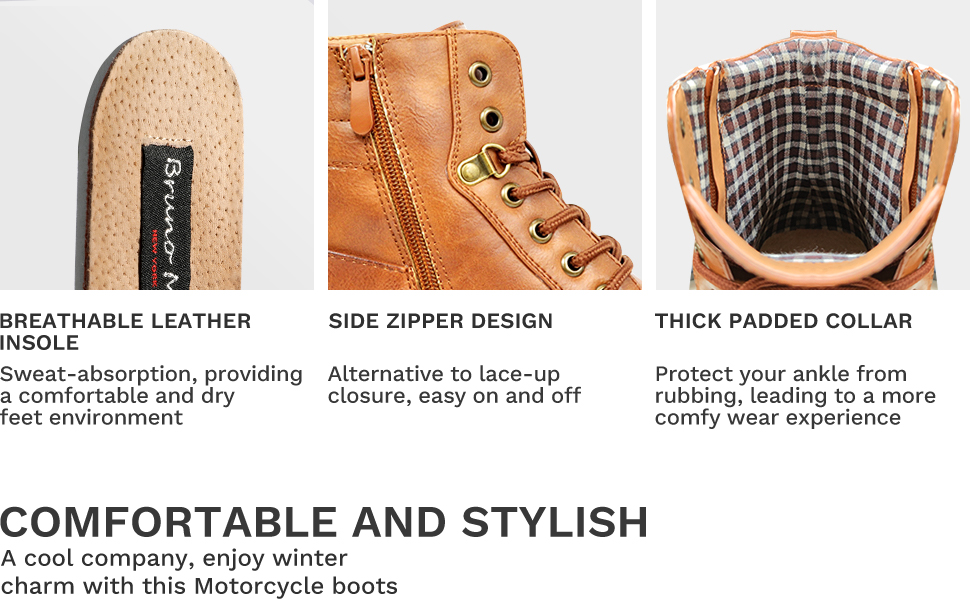 ⭐With 30 days no risk money back guarantee.⭐99% of reviewers recommend this product.⭐100% Satisfaction Guaranteed.⭐Ship within 48 hours.Product Description🎁 Today Only:Free Gift -Buy shoes and get a pair of complimentary Dallader premium socks (worth $19). Elevate your style with this limited-time offer. Hurry, quantities are limited. Shop now while supplies last!About this item✅Crafted from 2.5mm waterproof full-grain thick cowhide leather and breathable Hydro-Guard waterproof membrane lining. The waterproof membrane provides excellent waterproofing and breathability, maximizing your performance even in the most humid conditions.✅This leather not only has waterproof properties but also features a beautiful copper-green hue that becomes more unique over time. With fewer finishing materials used, it boasts a more natural appearance and feel, allowing its natural beauty to shine. Oil-tanned leather is highly durable.✅Oil-resistant, acid-resistant outsole with non-slip, traceless tread.✅Super Comfortable - Polyurethane insole provides additional cushioning and protection, equipped with ankle protectors, ventilation ports, TPU heel protectors, and support, perfect for those seeking stylish and practical boots.✅ShockAbsorbers comfort technology absorbs impact and returns energy; additional features such as D30 ankle protection, 3M reflective edging, heat-resistant leather uppers, and abrasion-resistant coatings elevate performance to a new level.✅The boots are soft and breathable, providing a snug fit for the feet, even during long walks. High-cuff boot collars provide excellent ankle protection. Good cushioning reduces impact, protecting the feet, and alleviating pain and fatigue.✅Technically certified under NOM-113-STPS-2009.✅Manufacturer Part Number: D96923✅Weight: 0.5kg✅CE certificationFrom Streets to Strides: Conquer Every Journey in Distinctive LeatherMeticulously HandcraftedEach pair is meticulously handcrafted, ensuring impeccable quality and durability. Employing Italian shoemaking techniques and robust hand-stitching, these boots are built to withstand the test of time, delivering a sleek, secure, and long-lasting design.Twist Control System (TCS) prevents excessive ankle twisting Ultra-fine fiber upper with front padded airbox for increased comfortElastic shoe collar for better calf wrapAir Tech breathable mesh lining Ergonomically designed polyurethane heel stabilizer and shin plateSuede heat shield Removable inner boot with gel insert at the ankle Left boot features a special last and sole for perfect positioning of steel shoesRight boot equipped with a highly abrasion-resistant outsole, featuring an exclusive adjustable heel.✅STURDINESS -Men's motorcycle boots are versatile for more than just riding. They are also ideal boots for outdoor, hiking, camping and other outdoor activities. These boots are durable and can handle a variety of environments and terrains. Whether you're riding a motorcycle or exploring the great outdoors, these boots are your reliable companion.ClickADD TO CARTTo Order Yours Now!The Checkout Process is Guaranteed to be 100% Safe and Secure withVisa, MasterCard, American Express, Discover, Apple Pay or PayPal.100% Satisfaction Guaranteed With Every Order.MONEY BACK GUARANTEEWe want you to be 100% satisfied with the products you buy from us. If the items you receive are defective, please return them for a refund within 30 days.