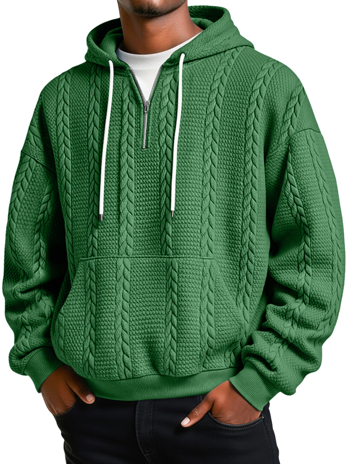 Men's Jacquard Texture Casual Zipper Hooded Loose Sweatshirt