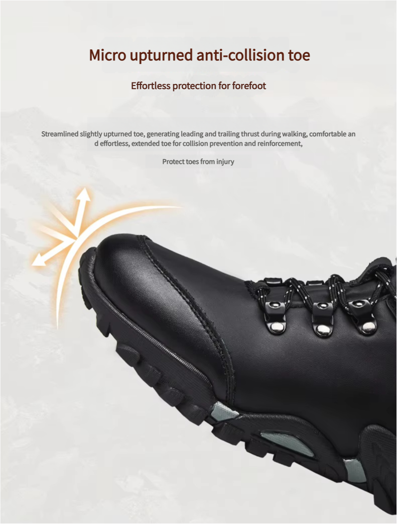 This shoe has a unique streamlined, slightly upturned anti-collision toe cap design, providing all-round protection for your feet. The slightly upturned design cleverly enhances the anti-collision performance.
