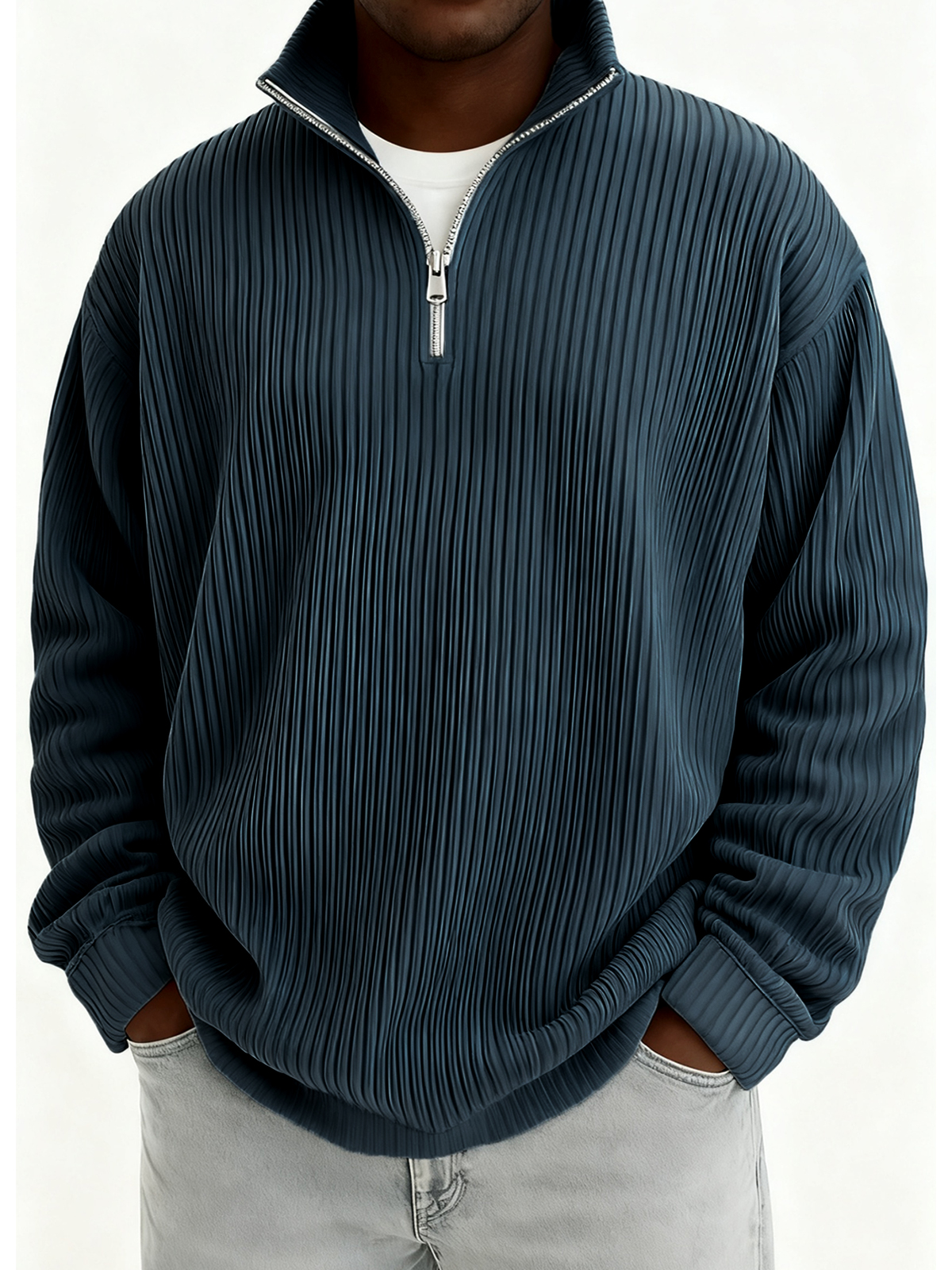 Men's Quarter-Zip Stylish Pleated Ribbed Pullover