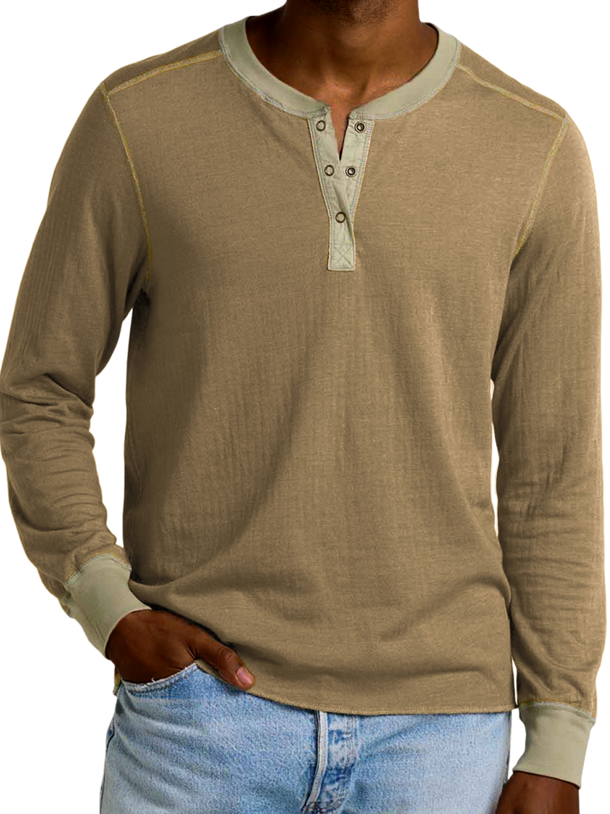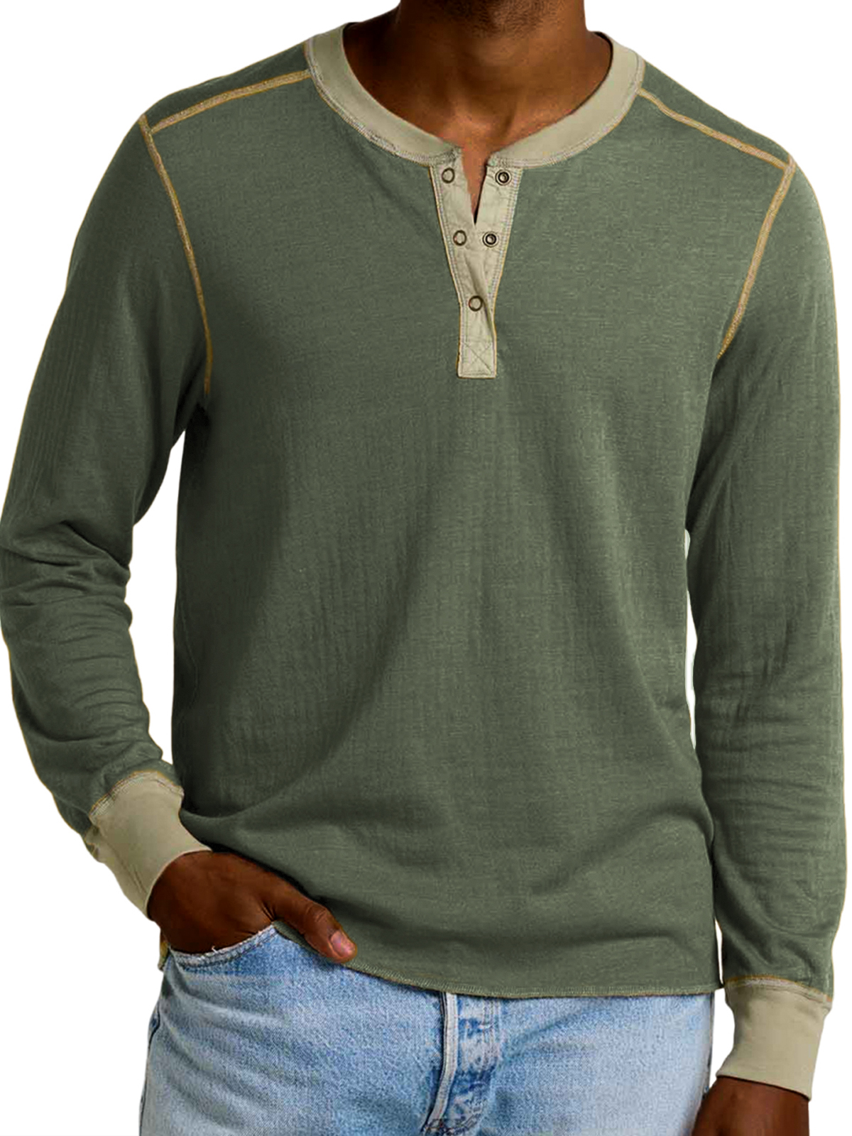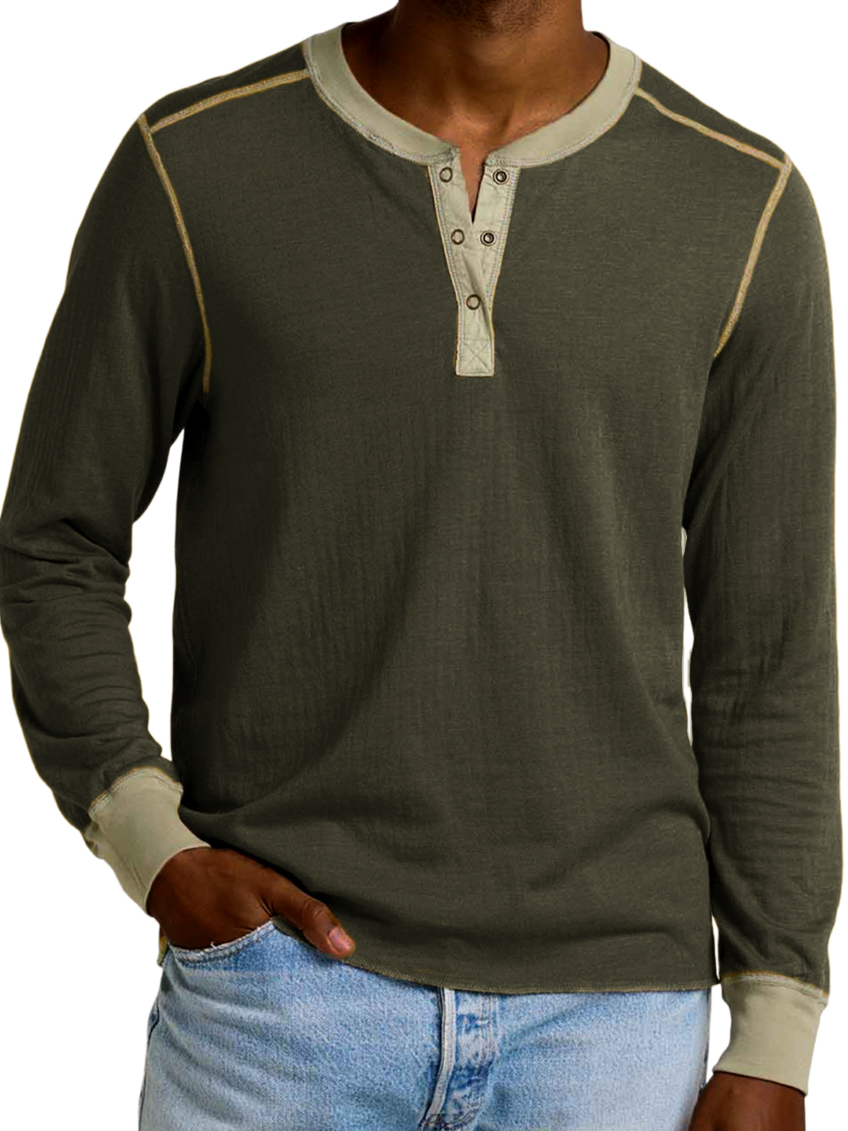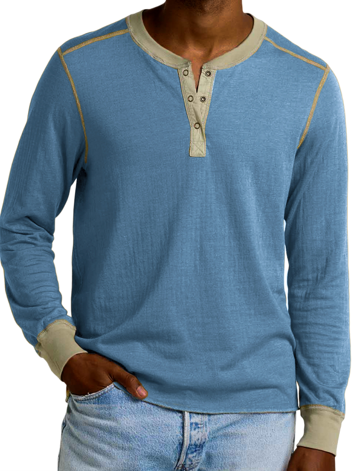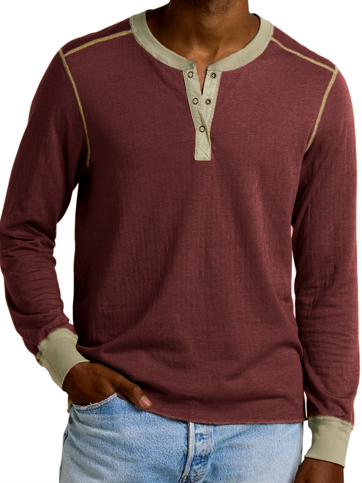 Men's Retro Contrast Long Sleeve Henley