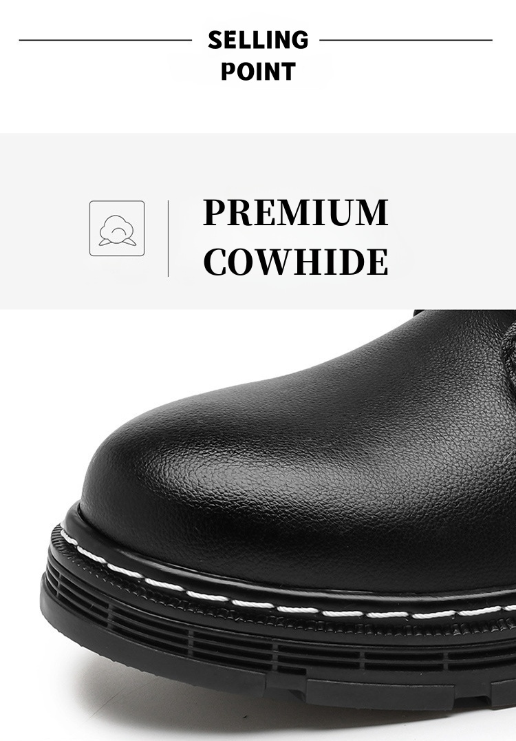 Elevate your workwear with our Men's Fashion Classic Work Side Zipper Cowhide Leather Waterproof Ankle Protection Boots. Crafted from premium cowhide leather, these boots offer both durability and style for any job site.