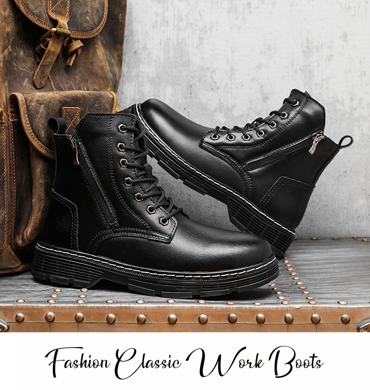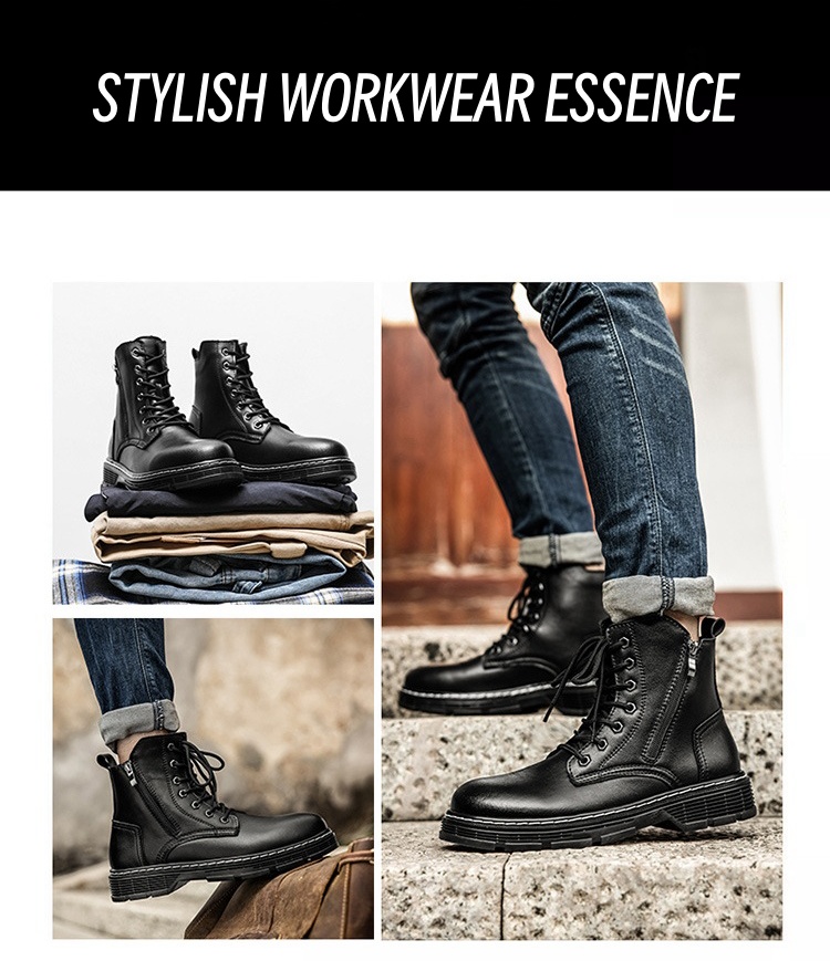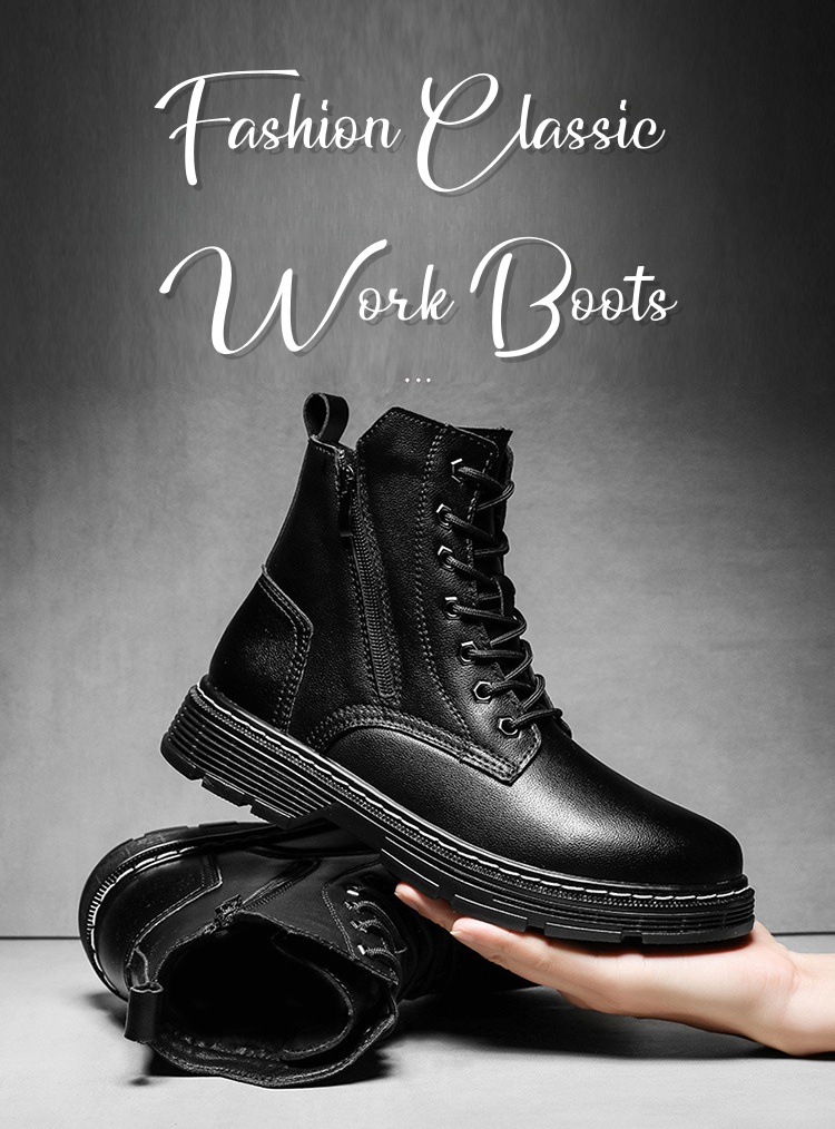 Experience superior comfort, durability, and style with our Men's Fashion Classic Work Side Zipper Cowhide Leather Waterproof Ankle Protection Boots, essential for any modern-day worker.