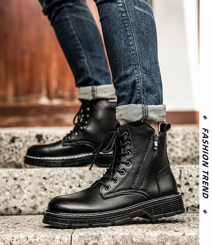 Men's Fashion Classic Work Side Zipper Cowhide Leather Waterproof Ankle Protection Boots