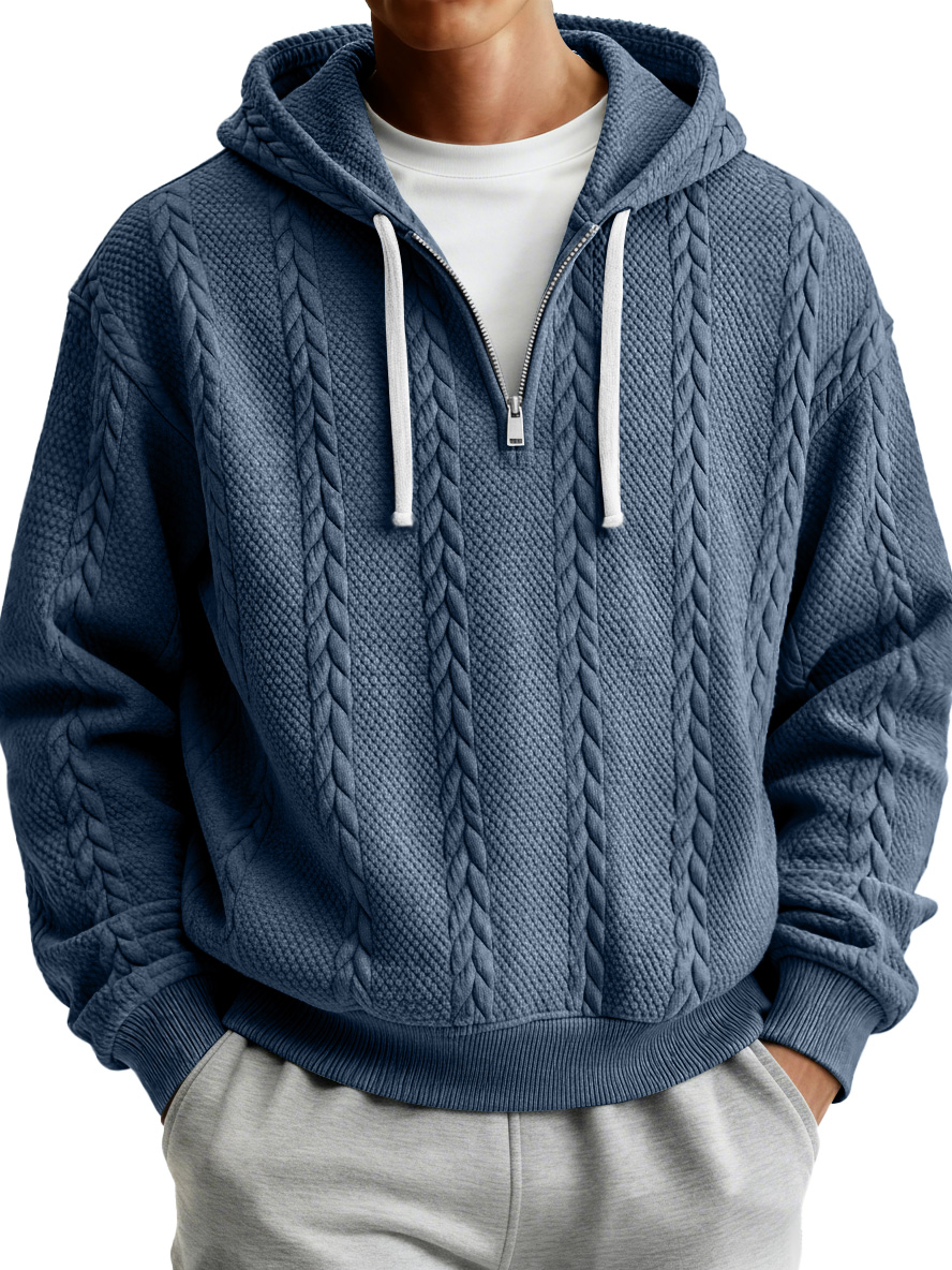 Men's Simple Textured Casual Zipper Hooded Sweatshirt