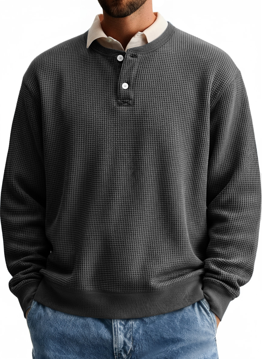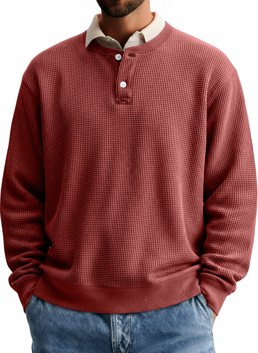 Men's Simple Waffle Casual Long Sleeve Henley Shirt