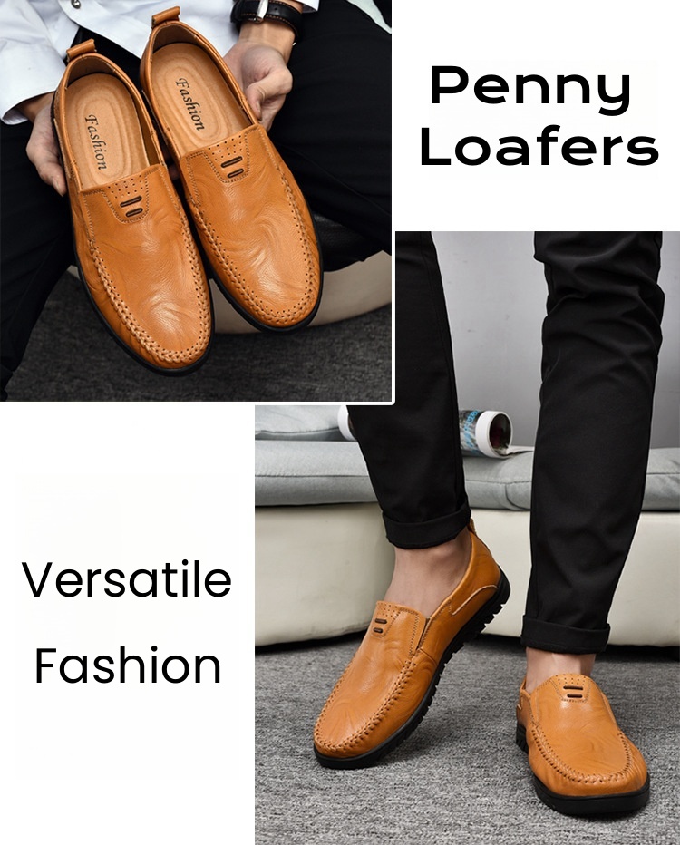 🏃👟Clearance!!🔥Last Hour!!🔥Men's Banquet Office Lightweight Design Soft-sole Slip-on Leather Penny Loafers