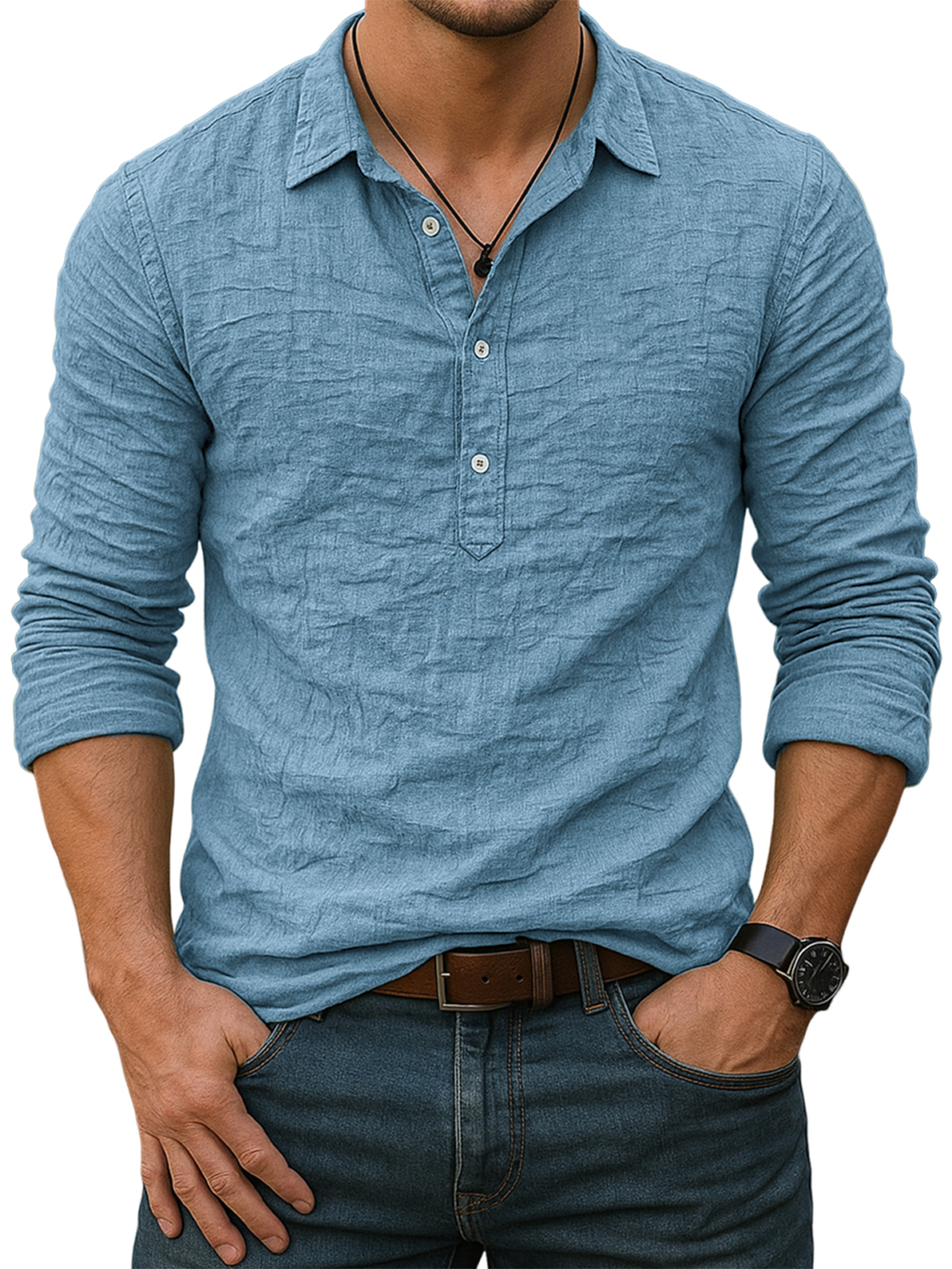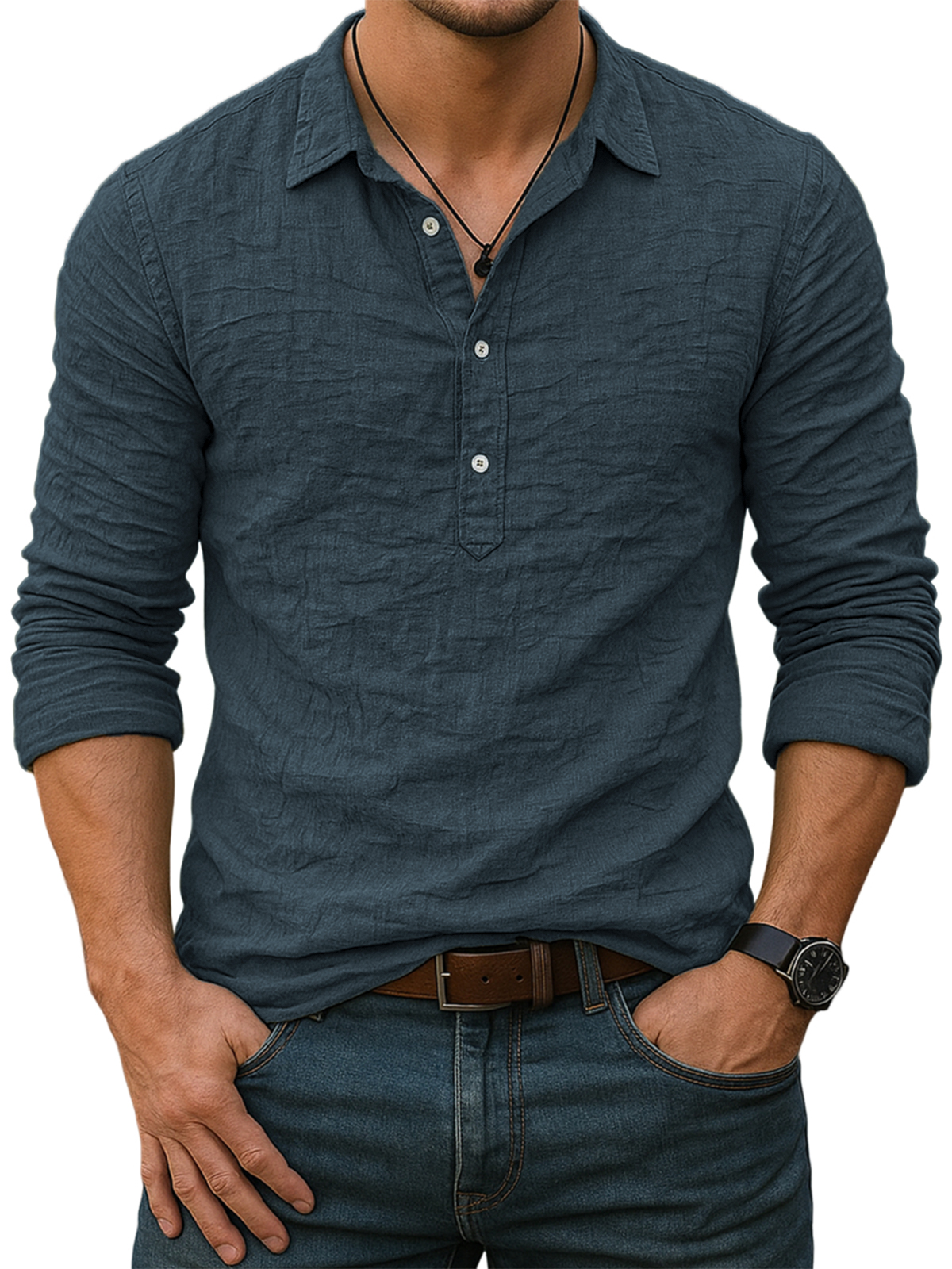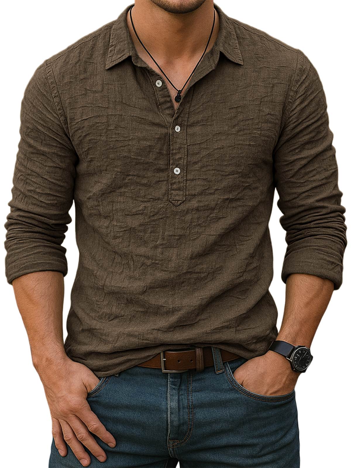 Men's Vintage Breathable Linen Casual Lapel Long Sleeve Henley Shirt